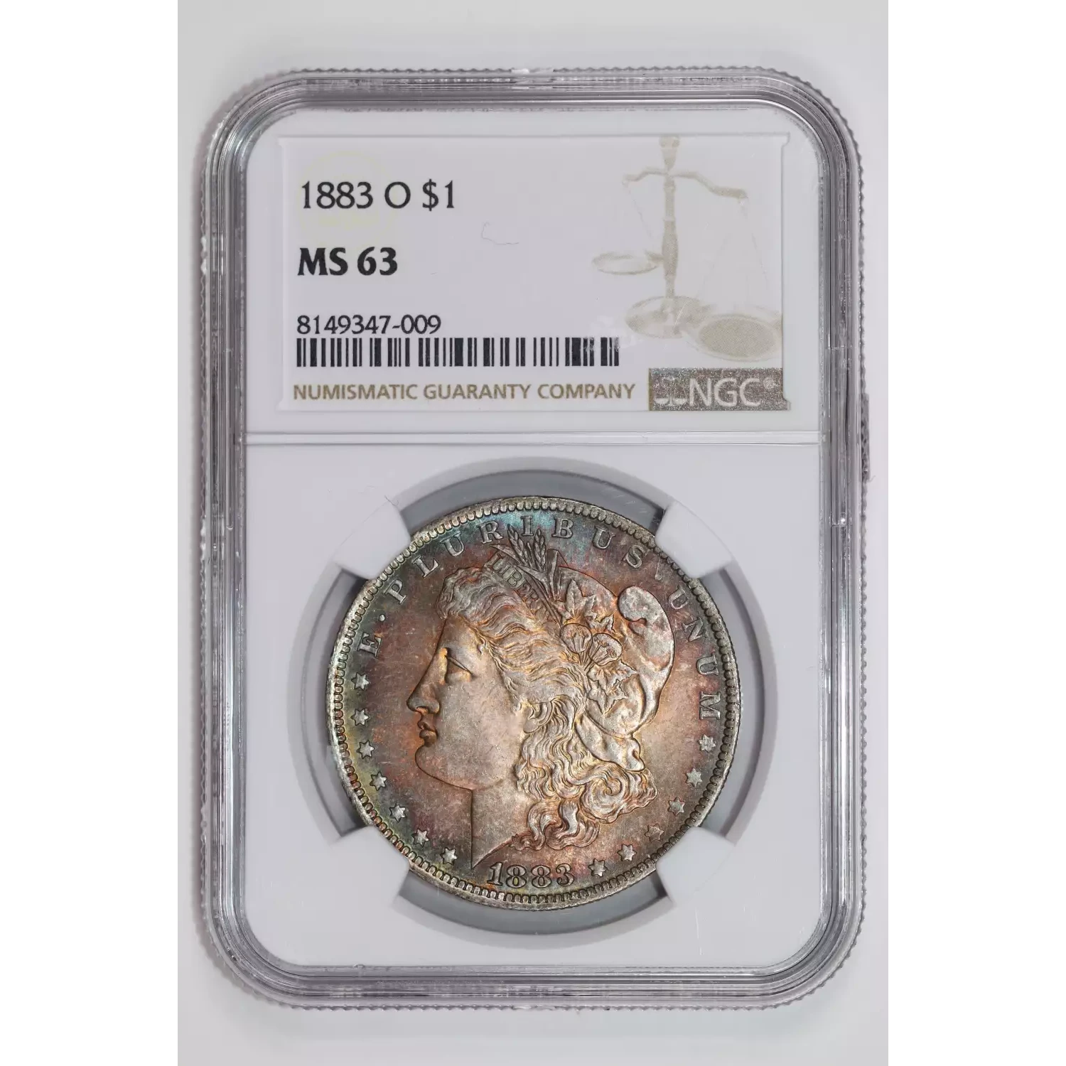 1883-O MORGAN DOLLAR NGC MS63 RAINBOW TONING!