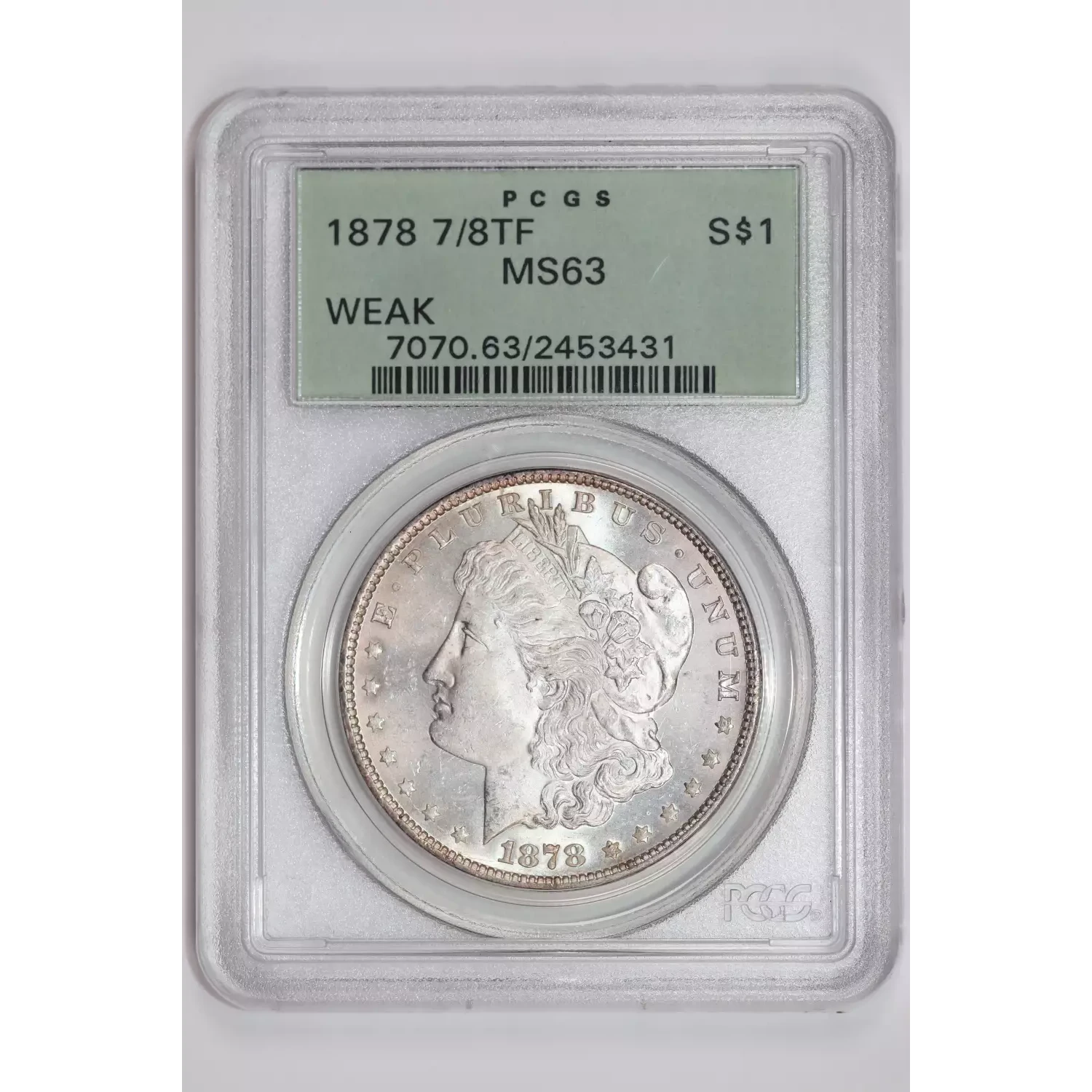 1878 7/8TF WEAK MORGAN DOLLAR PCGS MS63 OGH