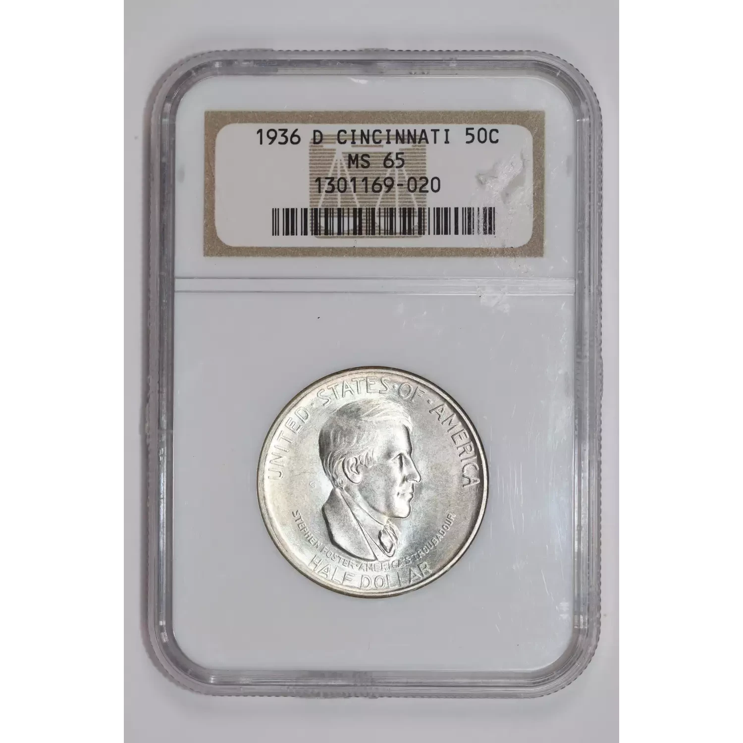 1936-D CINCINNATI COMMEMORATIVE HALF DOLLAR NGC MS65 PQ!