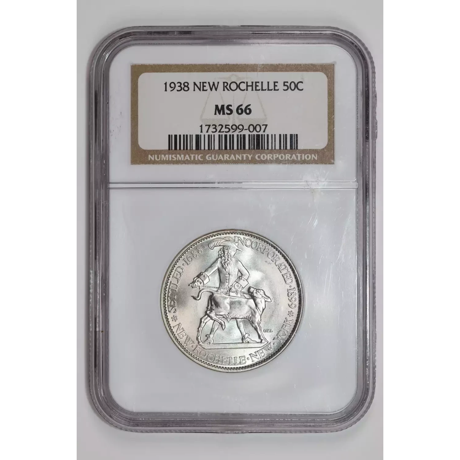1938 NEW ROCHELLE COMMEMORATIVE HALF DOLLAR NGC MS66 VERY PQ! LOOKS NICER!