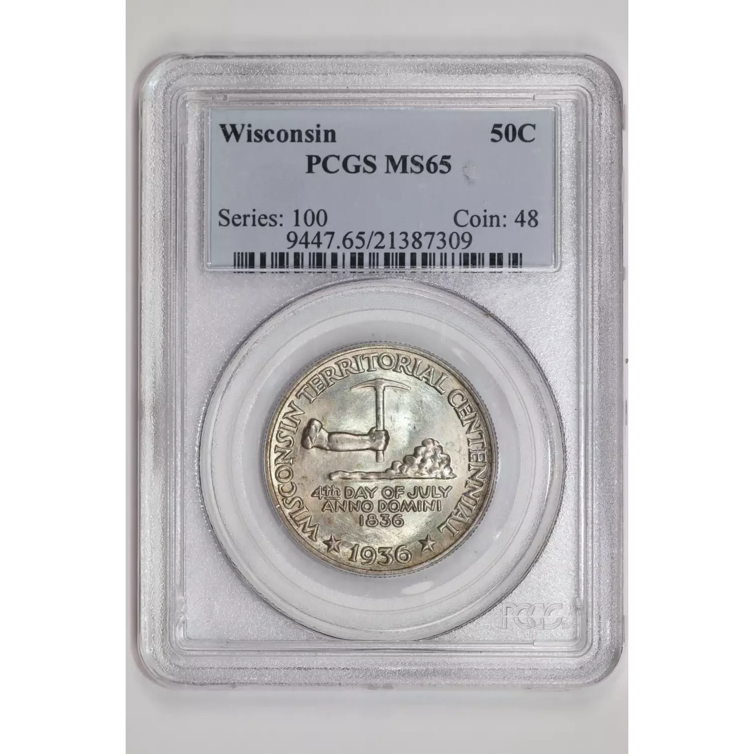 1936 Classic Commemorative Wisconsin Territorial Centennial PCGS MS-65 Wisconsin