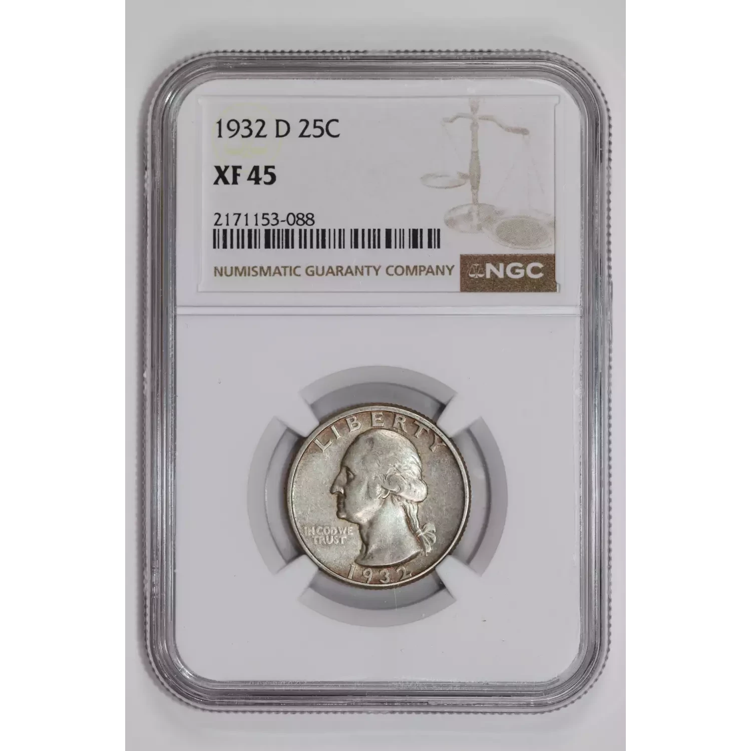 1932-D Quarter Dollars Silver Coinage NGC XF-45