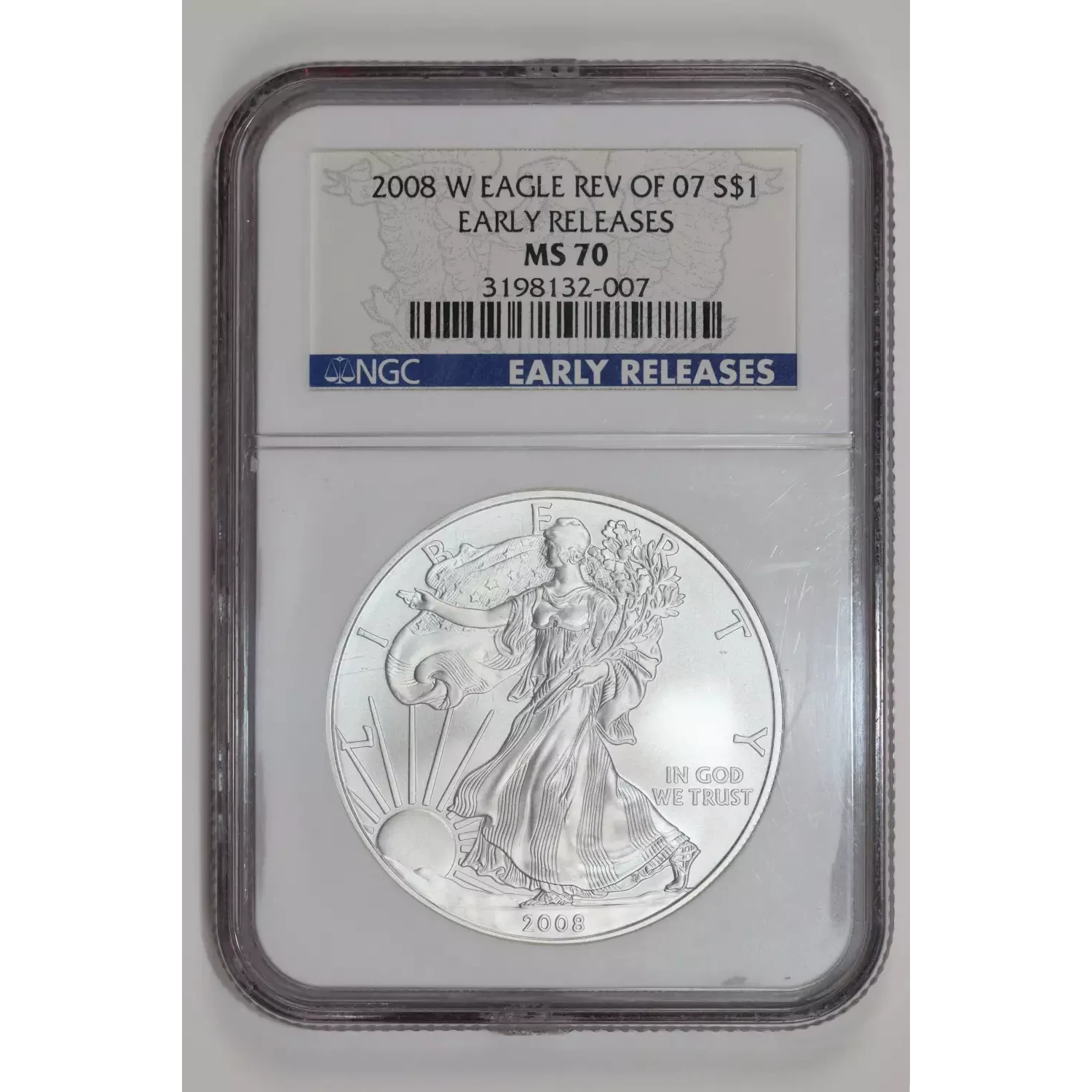 2008-W REVERSE OF 2007 SILVER AMERICAN EAGLE NGC MS70 EARLY RELEASES