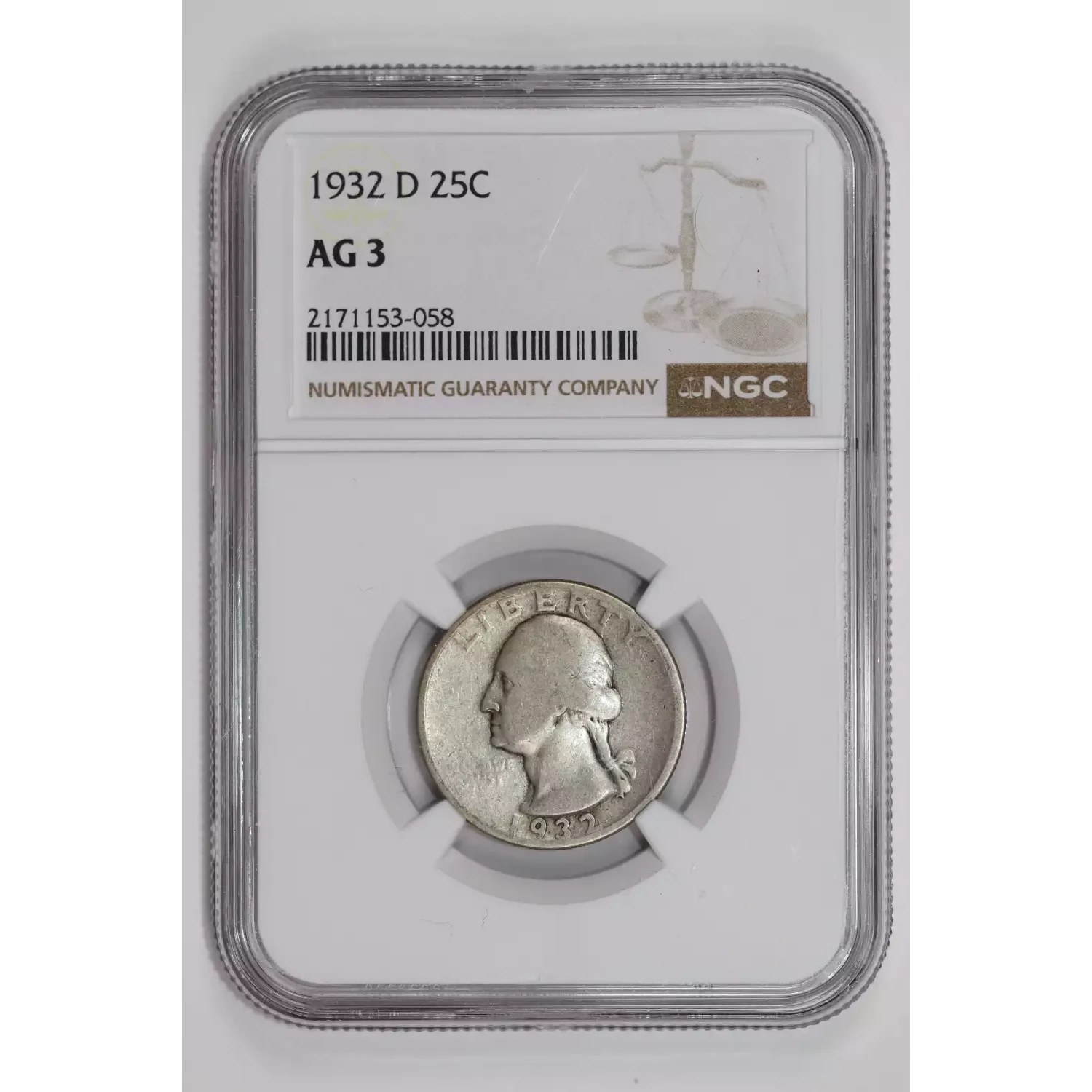 1932-D Quarter Dollars Silver Coinage NGC AG-3
