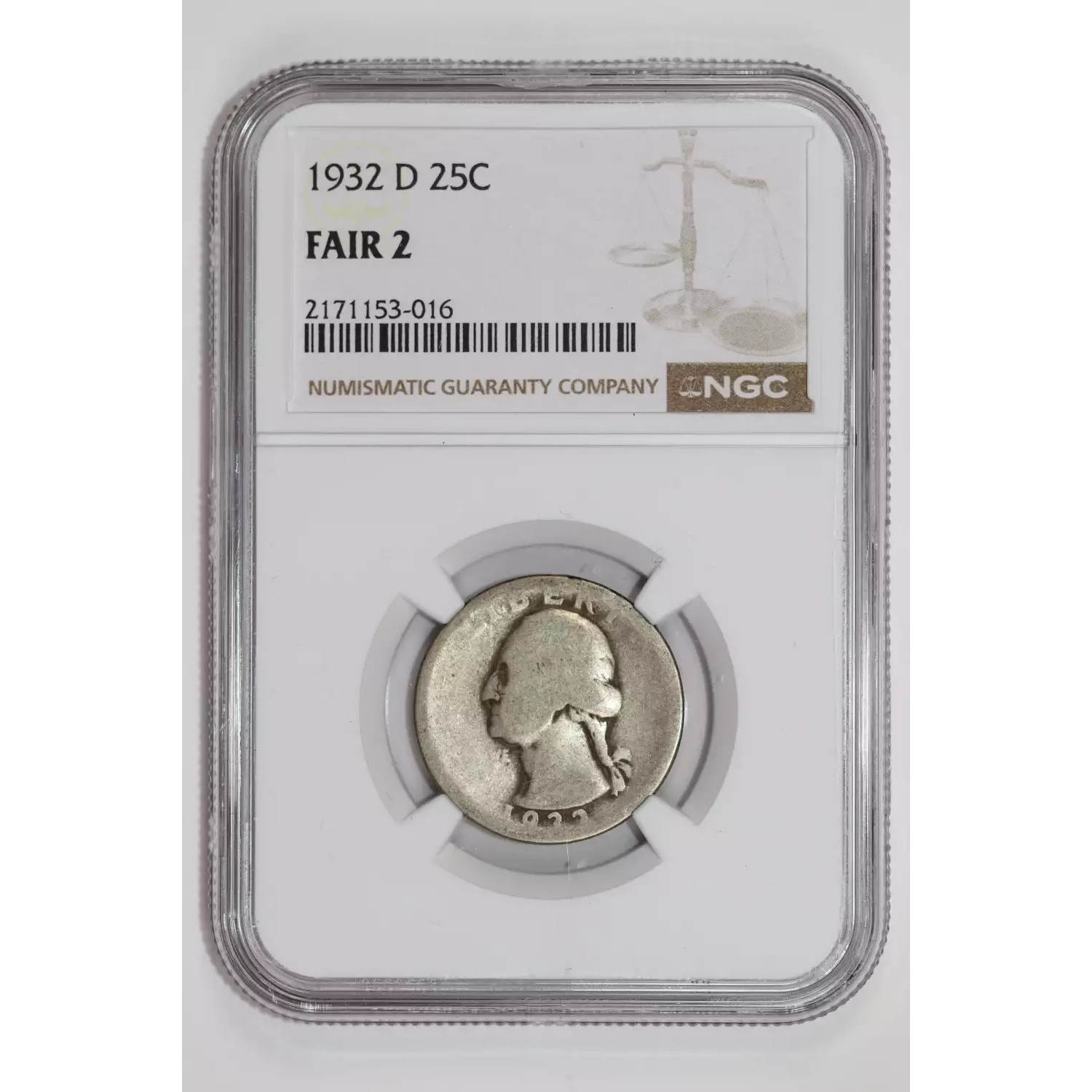 1932-D WASHINGTON QUARTER NGC FAIR 2