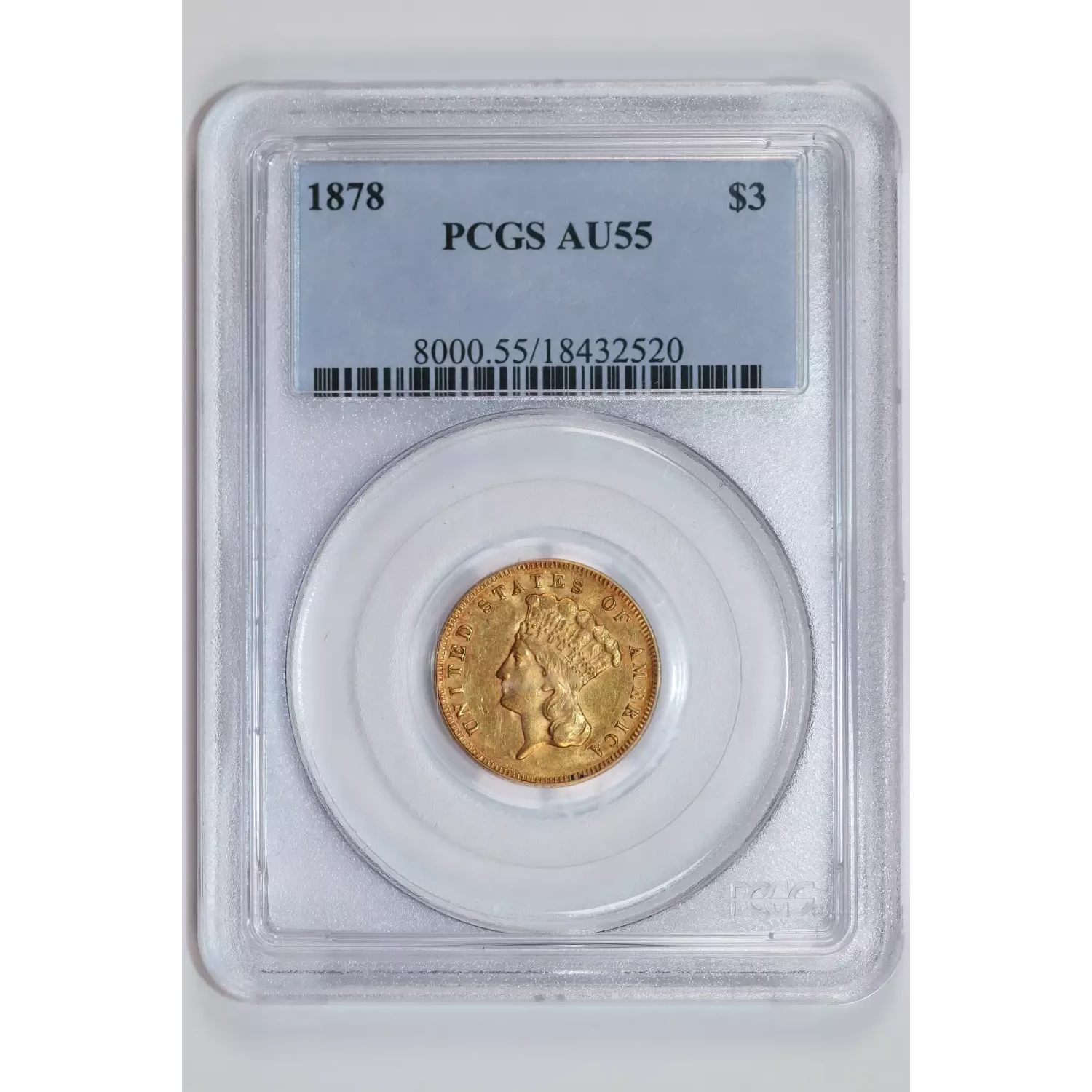1878 $3 GOLD PCGS AU55 ORIGINAL PQ!