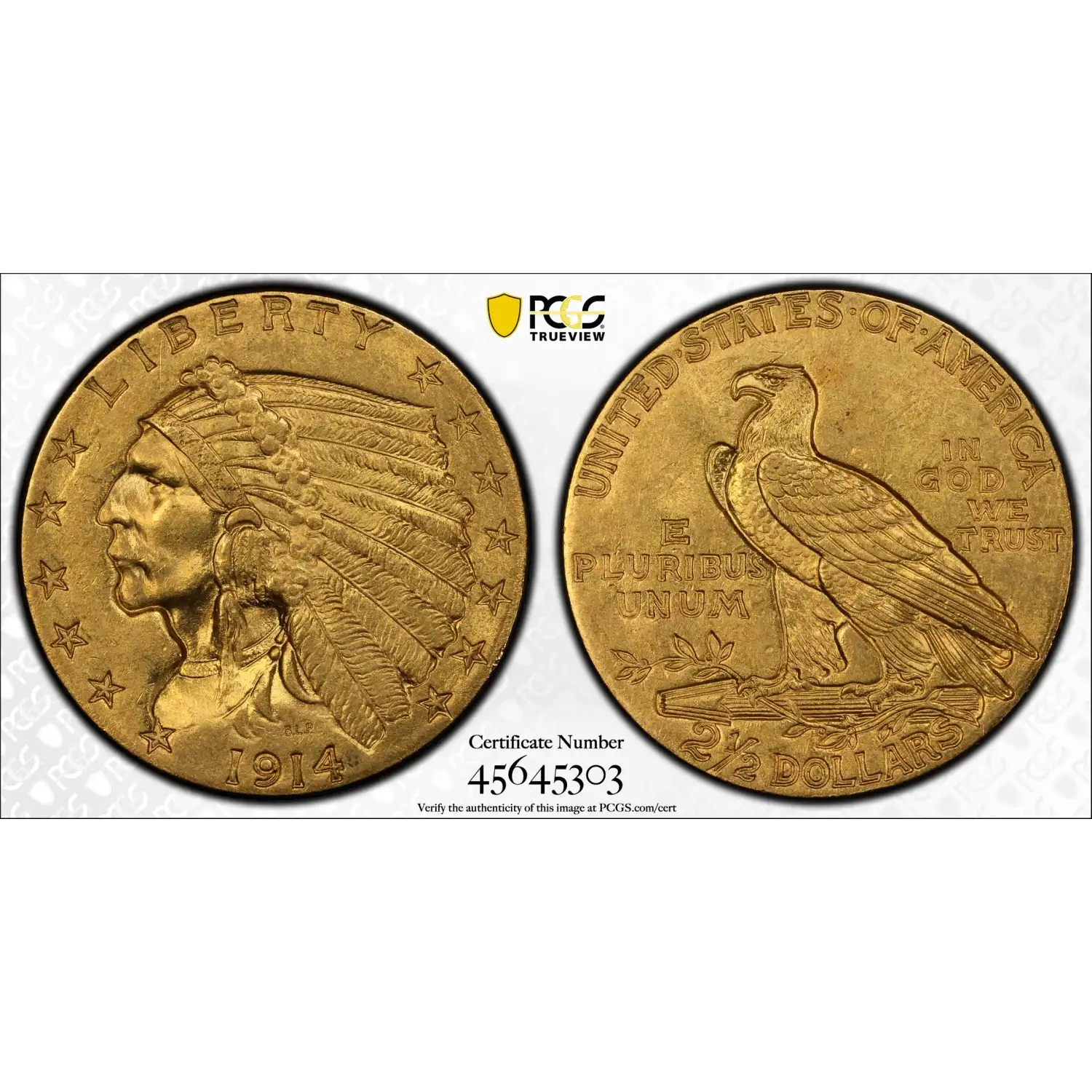 1914 Gold Quarter Eagles $2 1/2 Indian Head PCGS MS-62 CAC