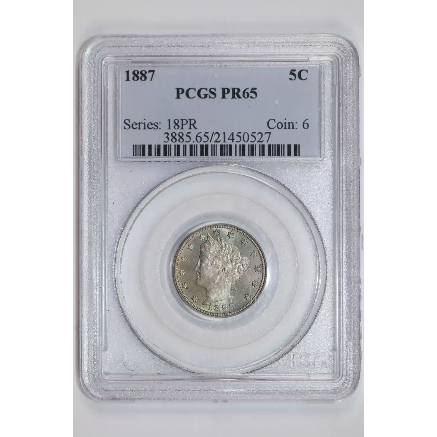 1887 PROOF LIBERTY V NICKEL PCGS PR65