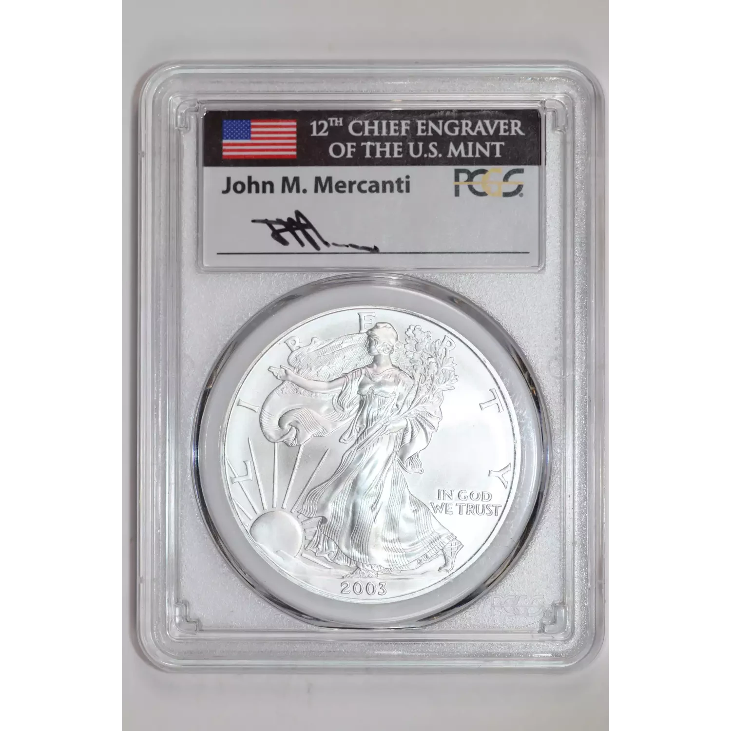 2003 SILVER EAGLE PCGS MS70 MERCANTI SIGNATURE FIRST STRIKE