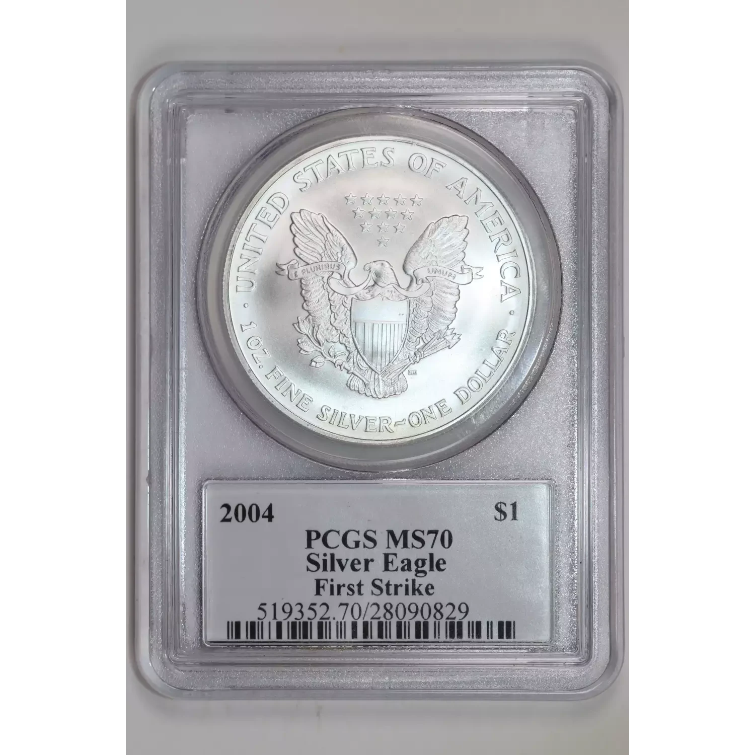 2004 SILVER EAGLE PCGS MS70 MERCANTI SIGNATURE FIRST STRIKE