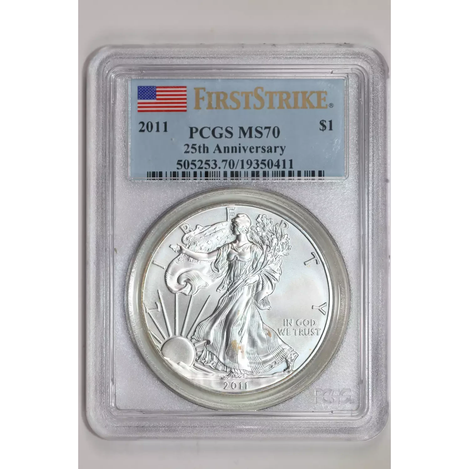 2011 SILVER EAGLE PCGS MS70 25TH ANNIVERSARY FIRST STRIKE