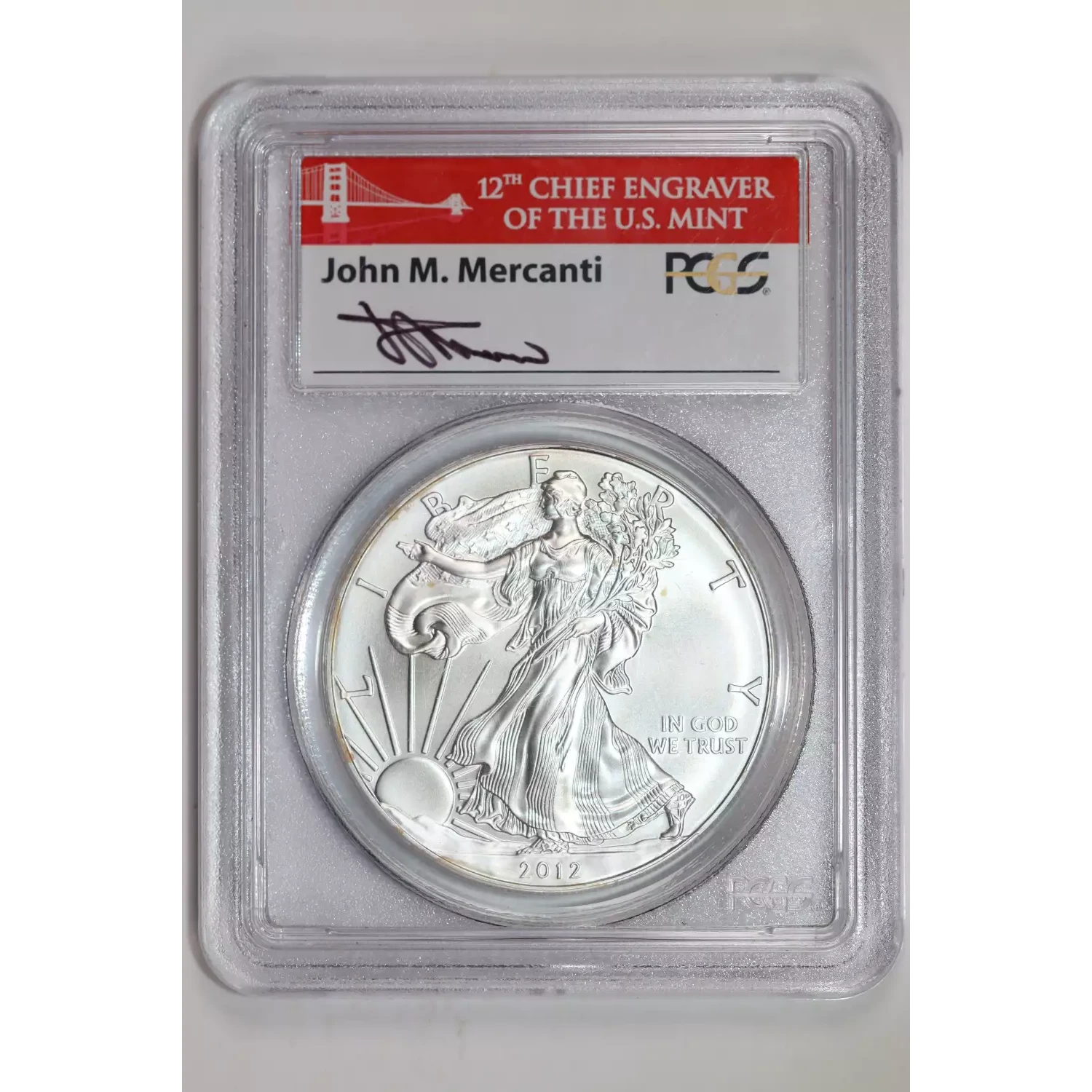2012-(S) STRUCK AT SAN FRANCISCO SILVER EAGLE PCGS MS70 MERCANTI SIGNATURE FIRST STRIKE