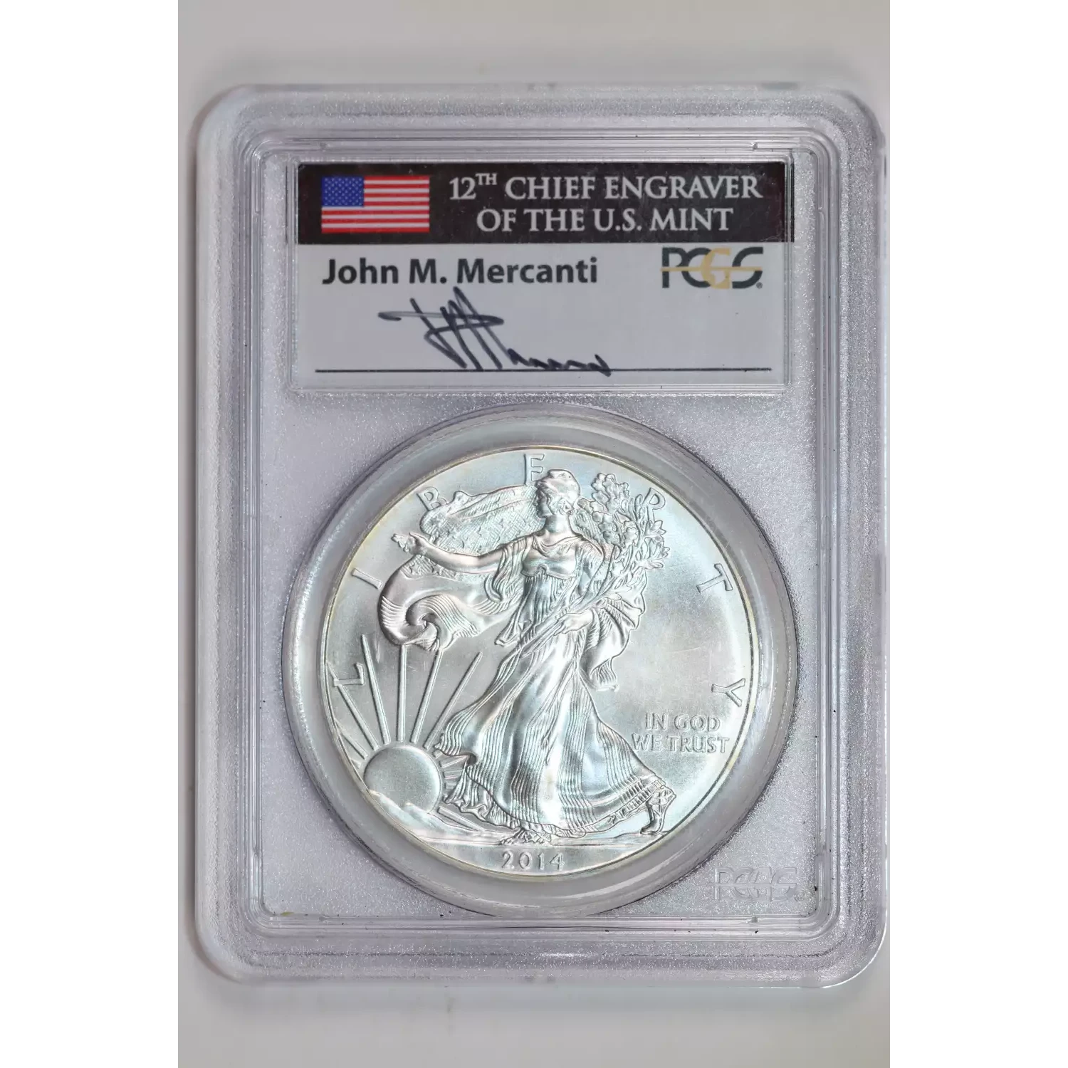 2014 SILVER EAGLE PCGS MS70 MERCANTI SIGNATURE FIRST STRIKE