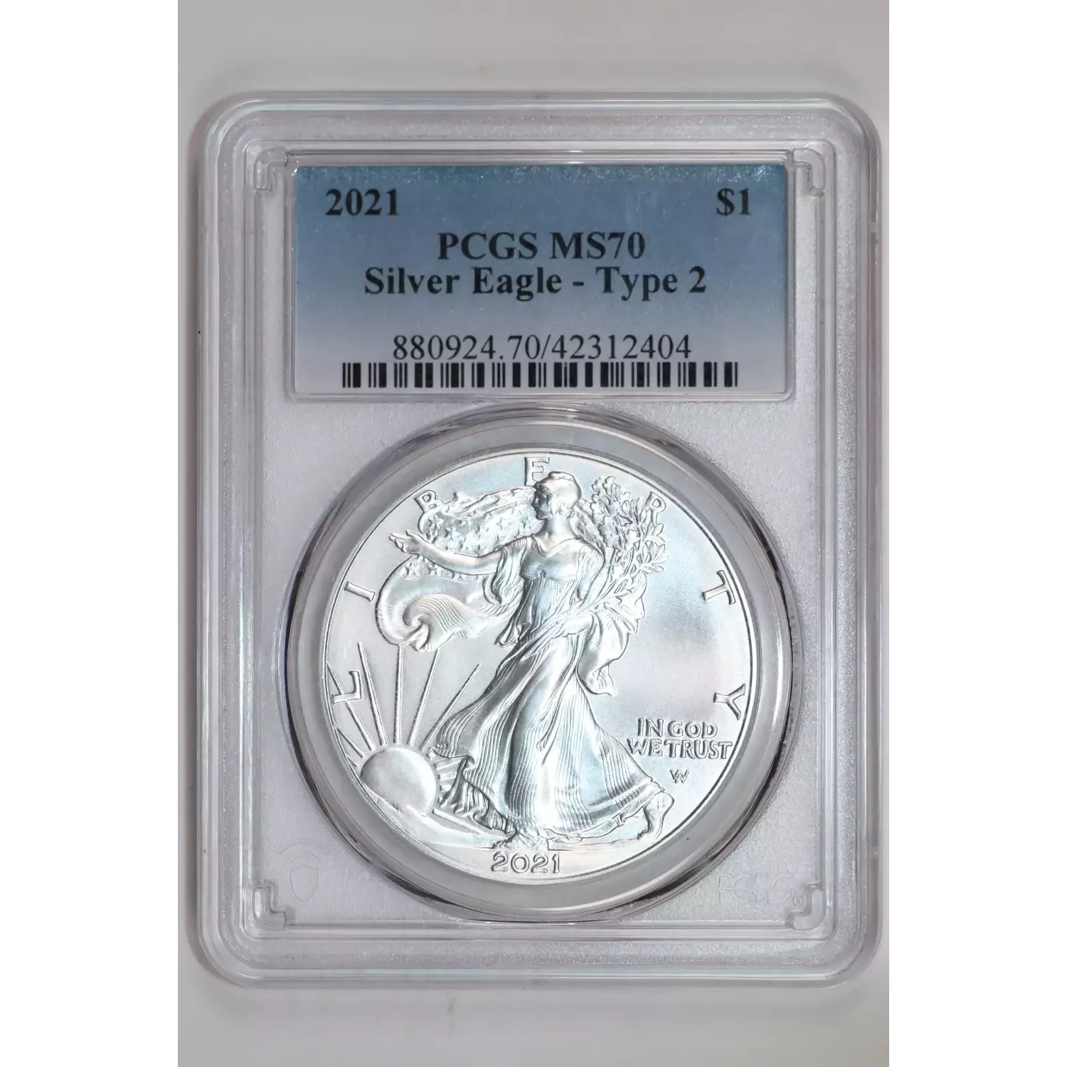 2021 TYPE 2 SILVER EAGLE PCGS MS70