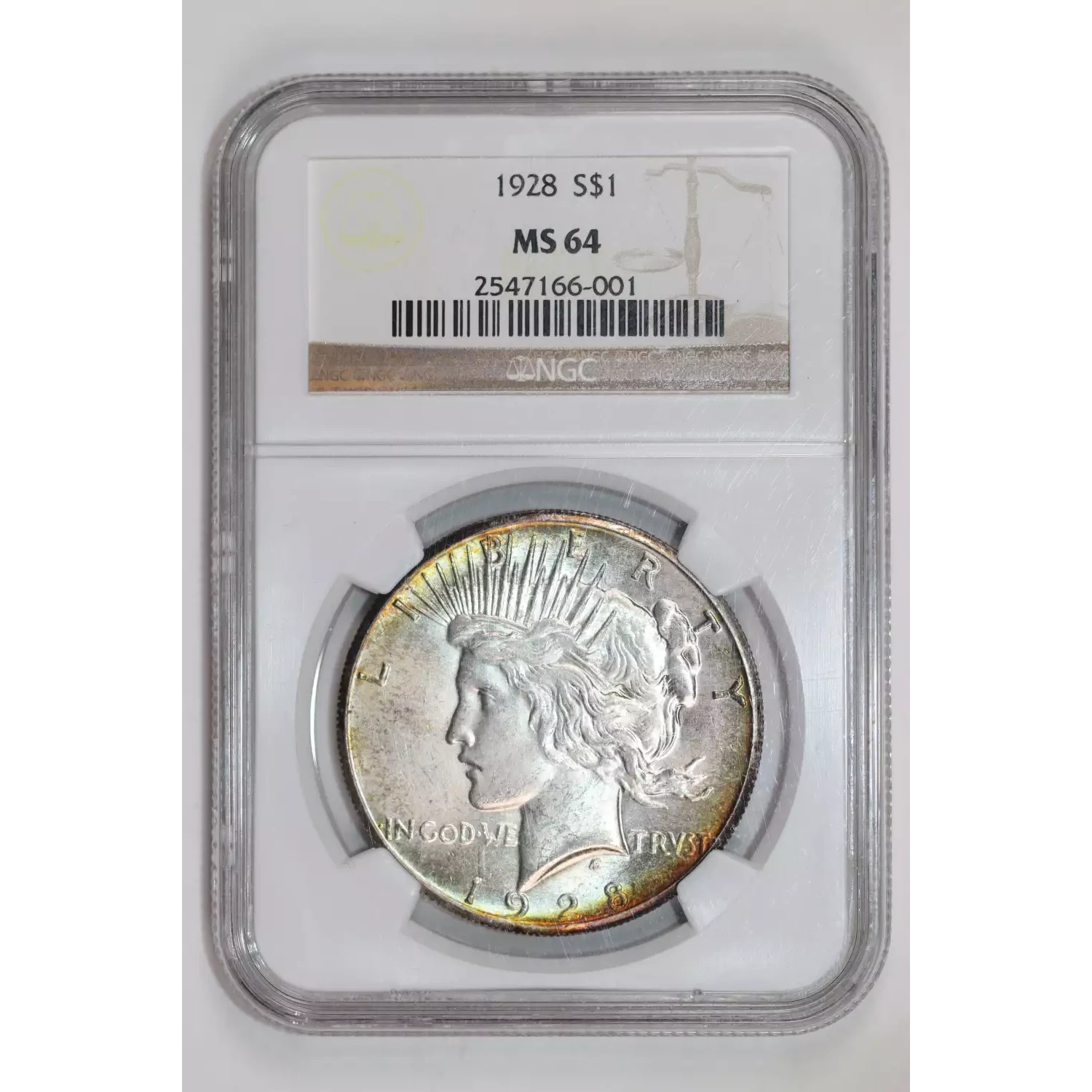 1928 PEACE DOLLAR NGC MS64 VERY PQ! GORGEOUS COLOR!