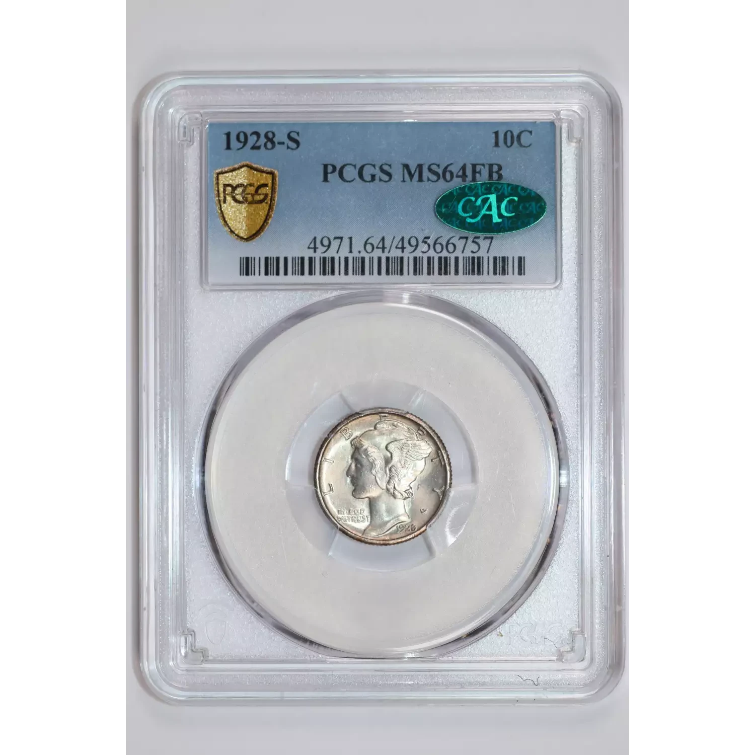 1928-S Dimes Winged Liberty Head or Mercury PCGS MS-64 FB