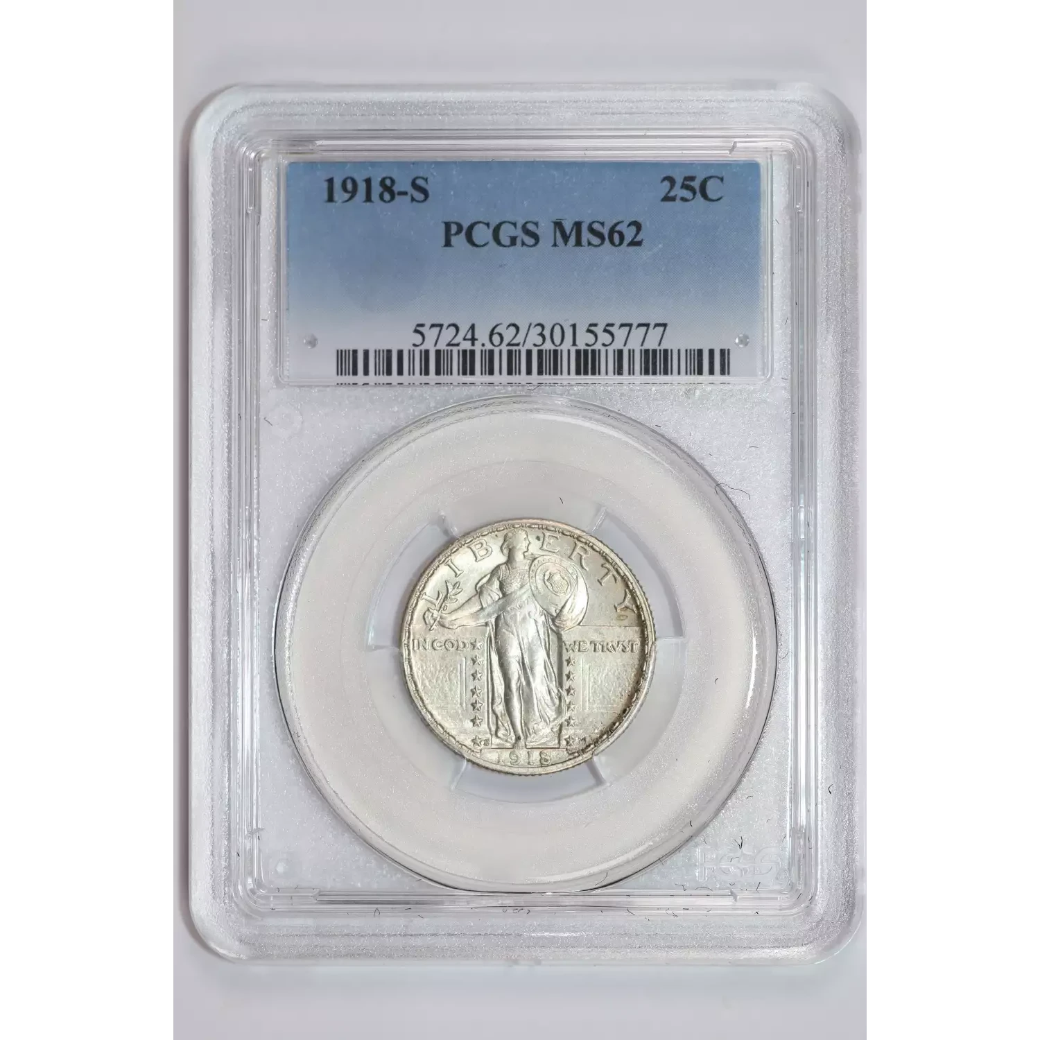 1918-S Quarter Dollars Standing Liberty Quarter PCGS MS-62