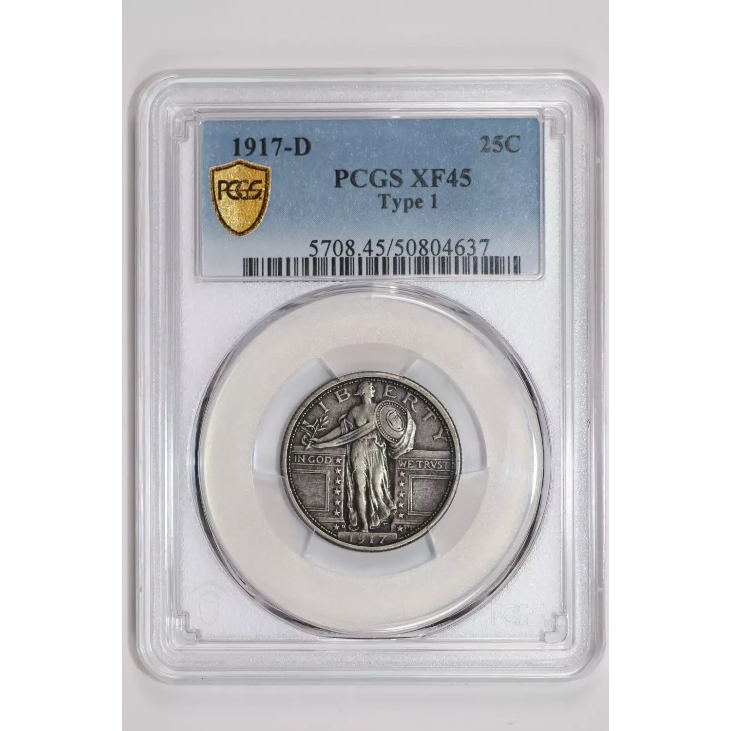 1917-D Quarter Dollars Standing Liberty Quarter PCGS XF-45 Type 1