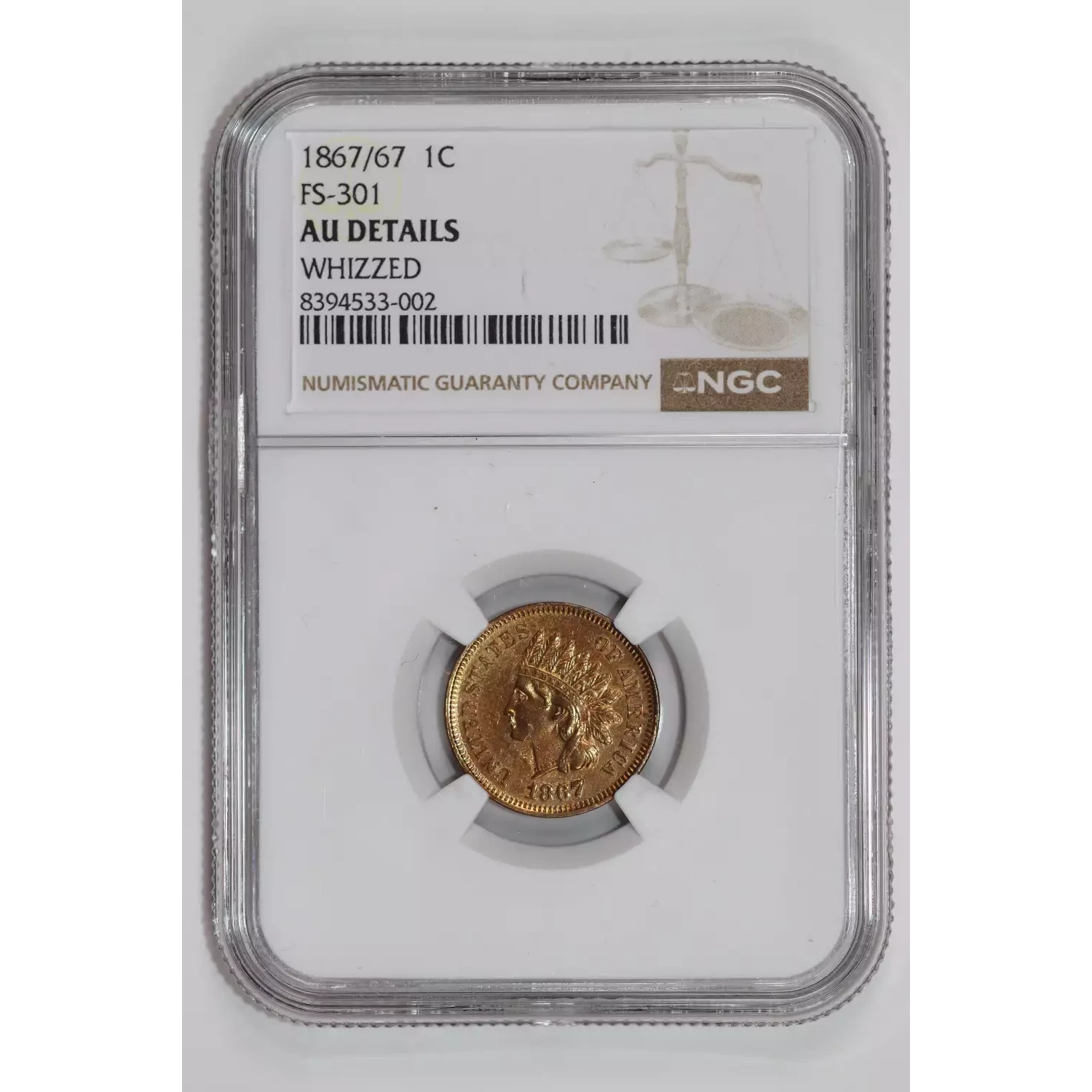 1867 Small Cents Indian Head NGC AU Details BN FS-301