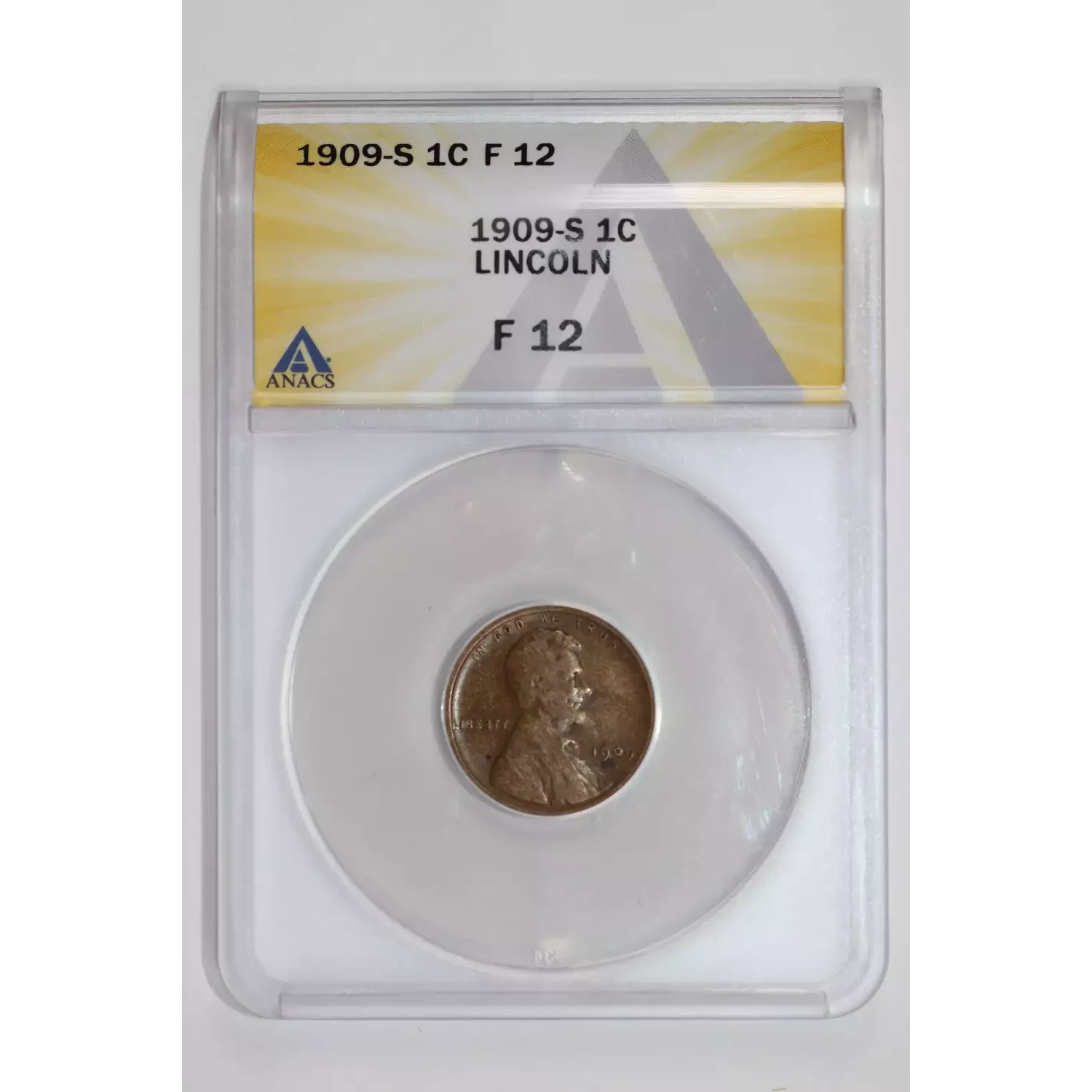 1909-S LINCOLN WHEAT CENT ANACS F12