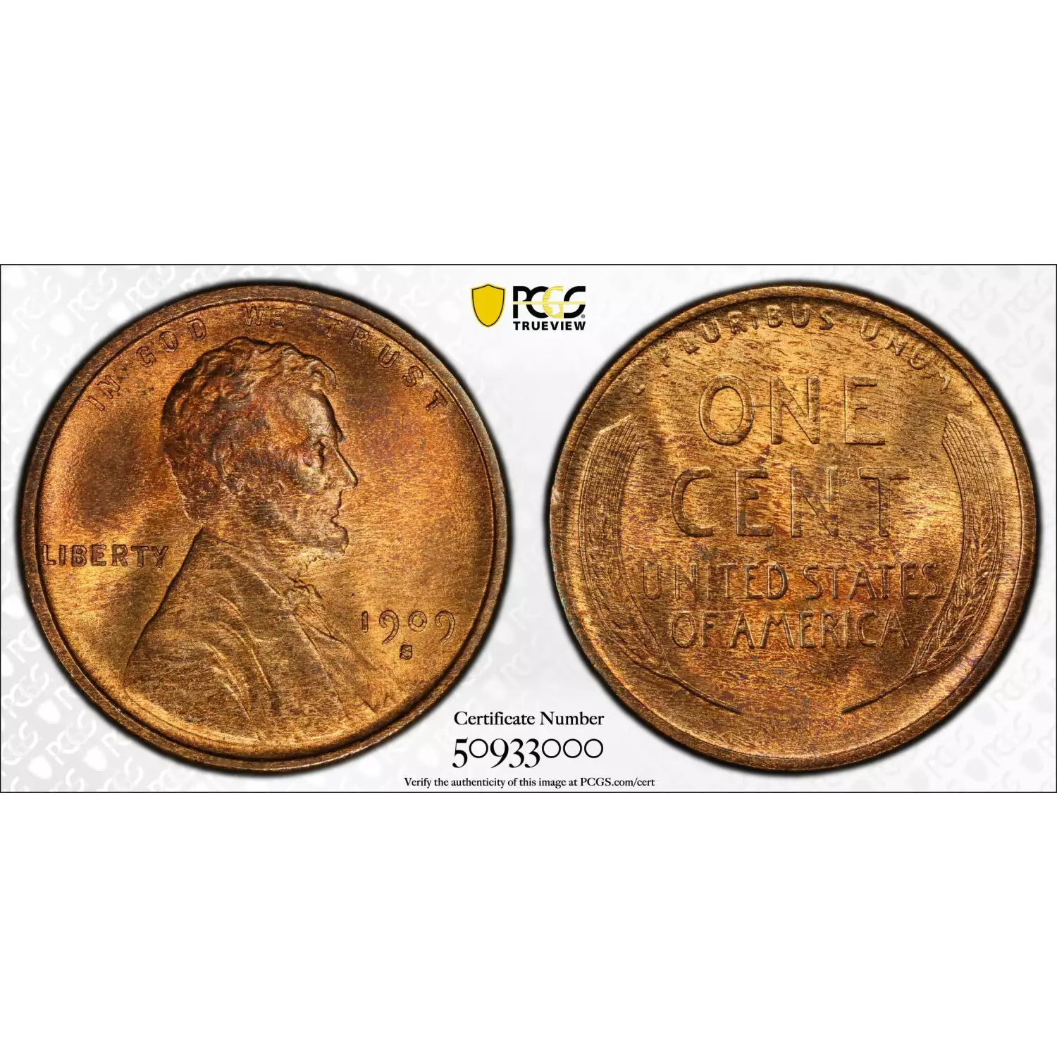 1909-S Small Cents Lincoln, Wheat Ears Reverse PCGS MS-66 RB Lincoln