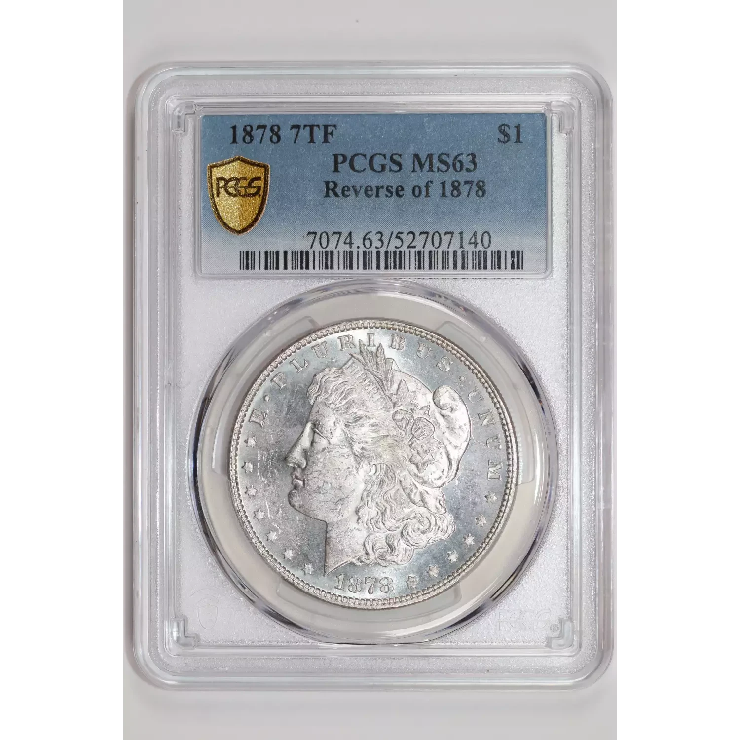 1878 Morgan Silver Dollar PCGS MS-63 7TF, Reverse of 1878