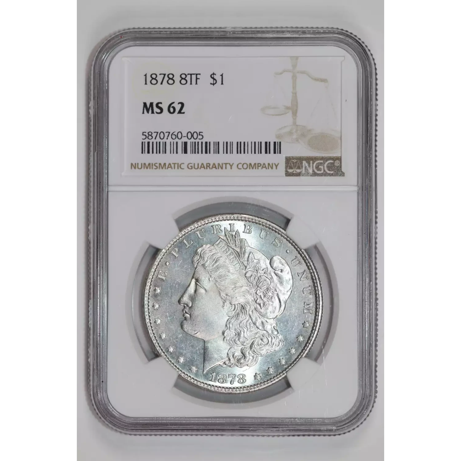 1878 Morgan Silver Dollar NGC MS-62 8TF