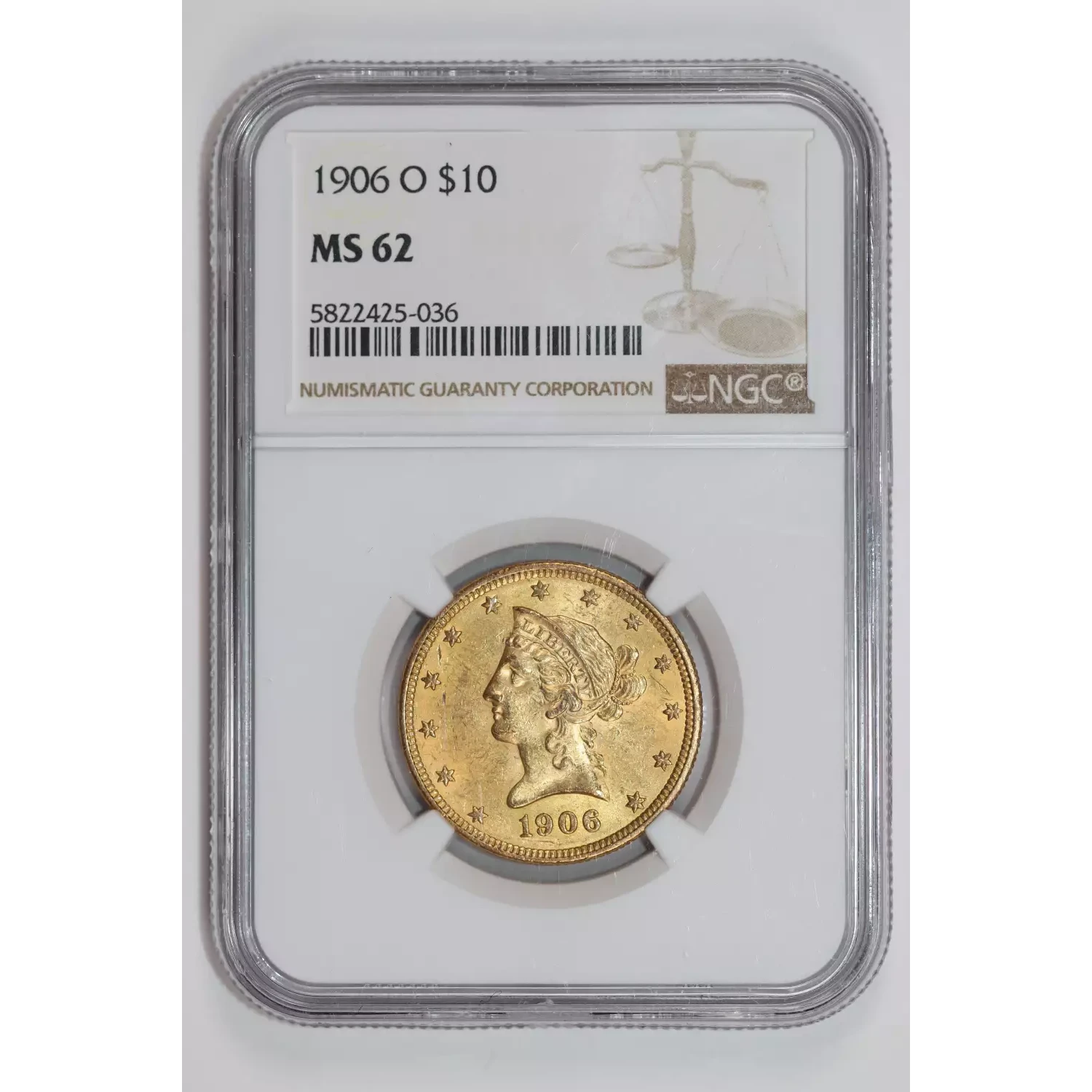 1906-O $10 GOLD LIBERTY EAGLE NGC MS62