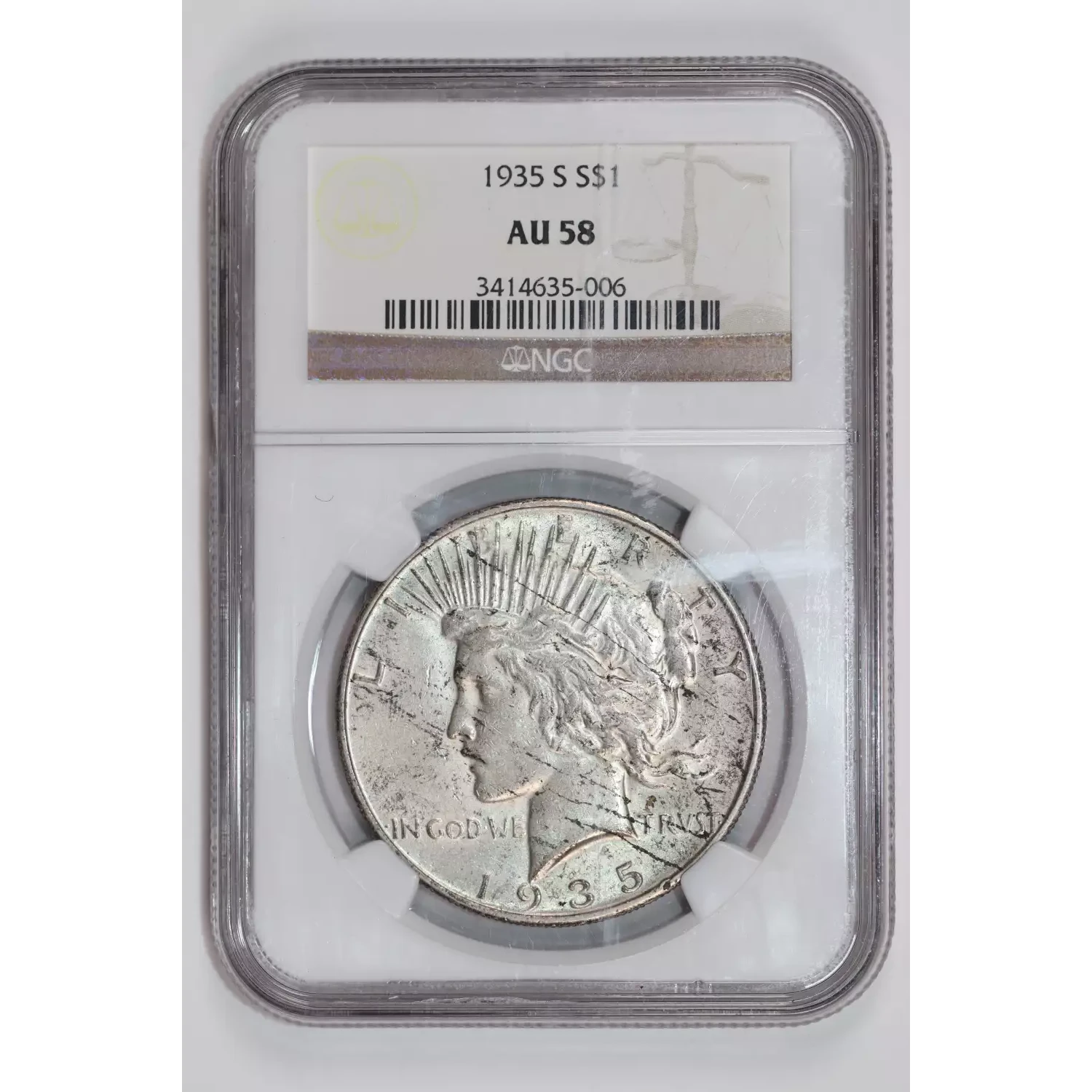 1935-S PEACE DOLLAR NGC AU58
