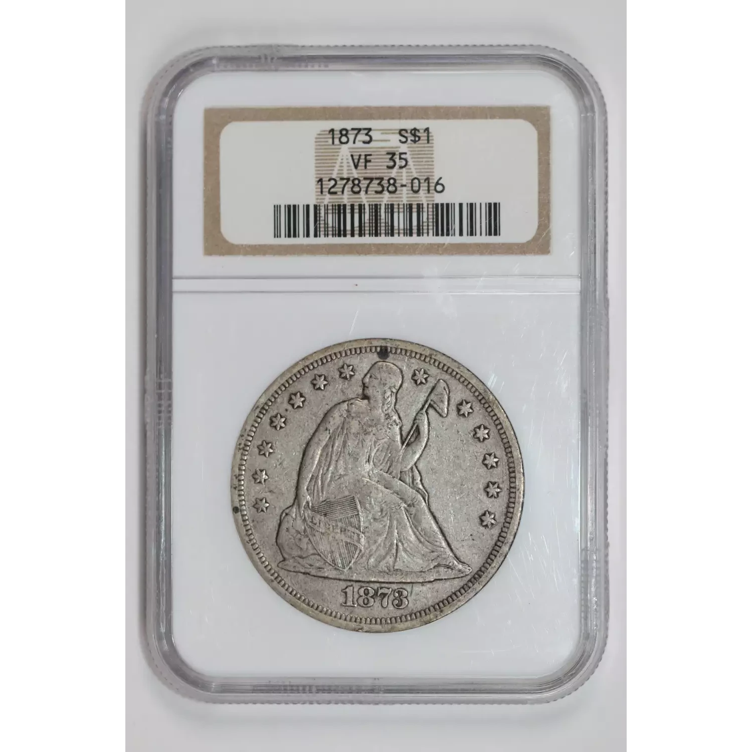 1873 SEATED LIBERTY DOLLAR NGC VF35