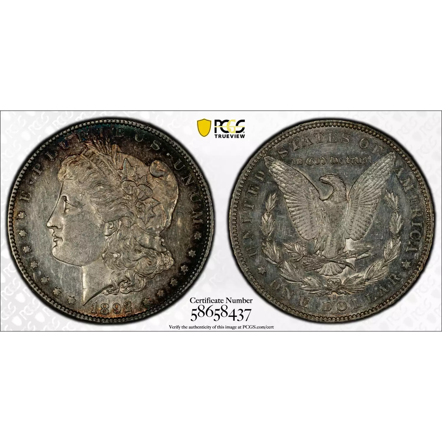 1892-S MORGAN DOLLAR PCGS AU55 - SEMI PL WITH NICE TONING!