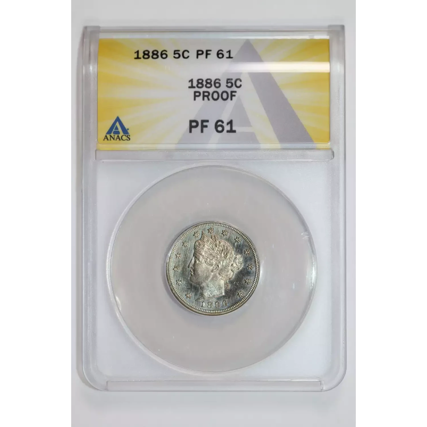 1886 PROOF LIBERTY V NICKEL ANACS PR61