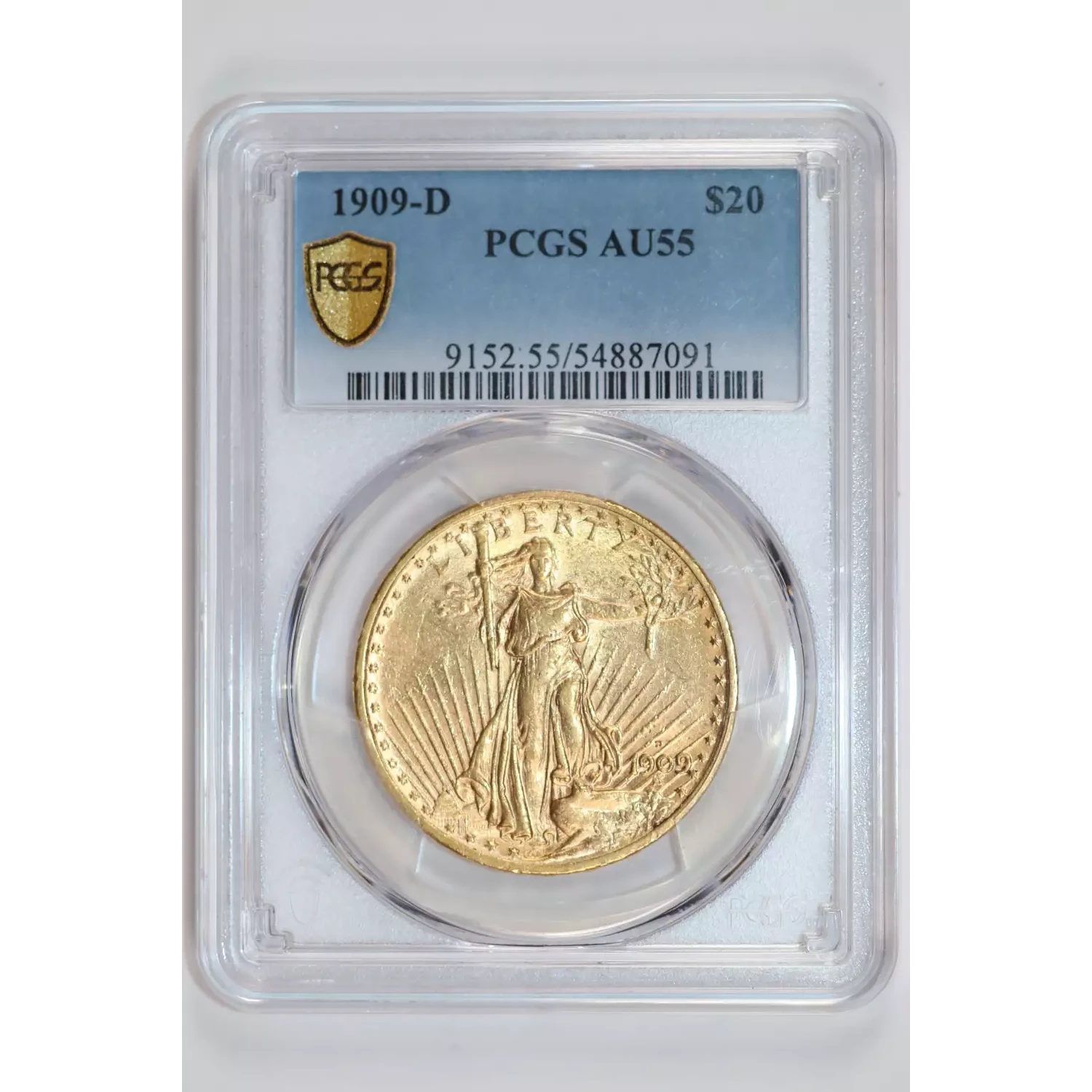 1909-D $20 GOLD SAINT GAUDENS DOUBLE EAGLE PCGS AU55