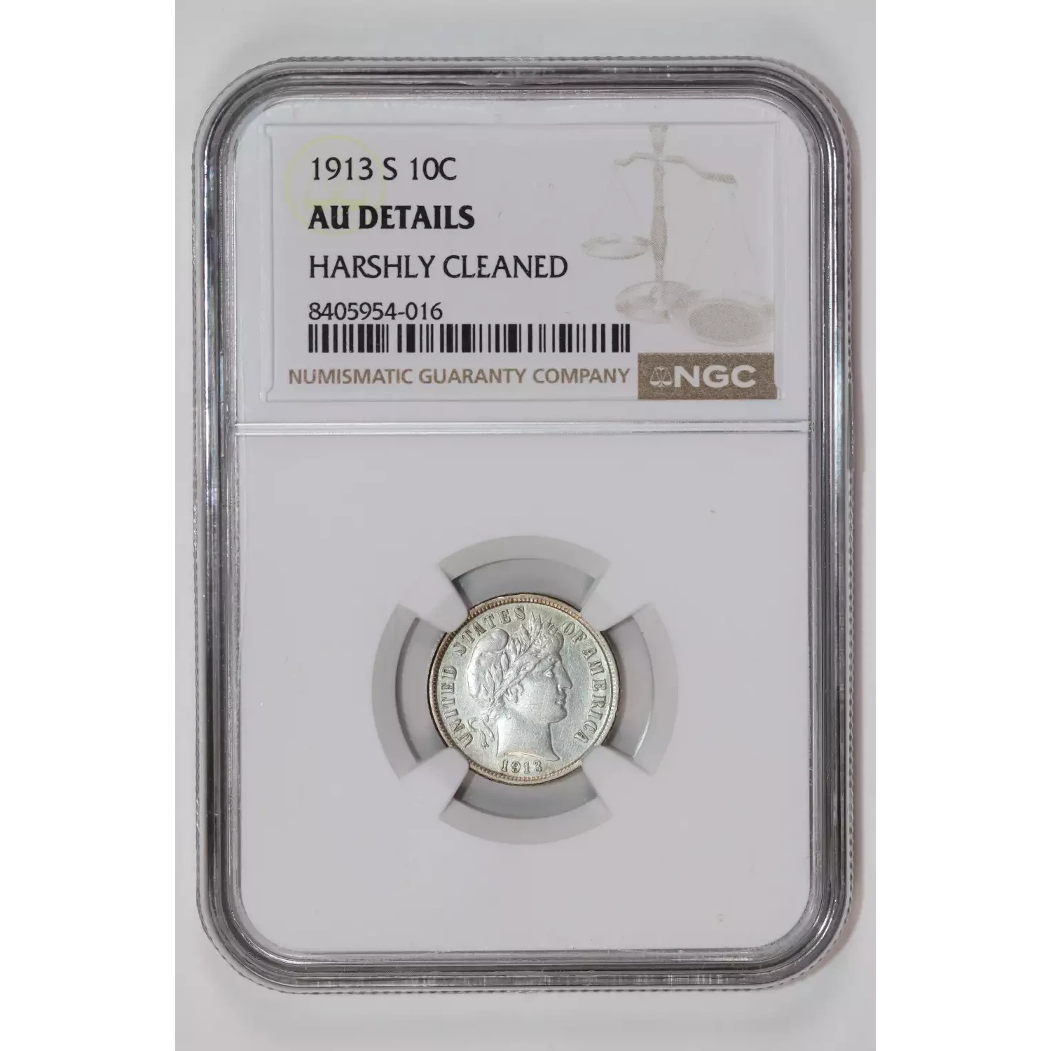 1913-S Dimes Barber or Liberty Head NGC AU Details