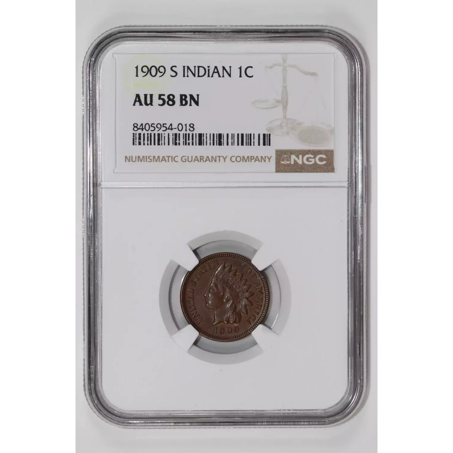 1909-S Small Cents Indian Head NGC AU-58 BN