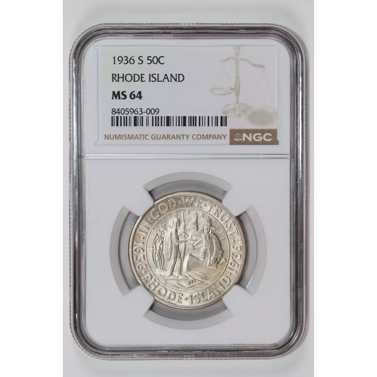 1936-S RHODE ISLAND COMMEMORATIVE HALF DOLLAR NGC MS64