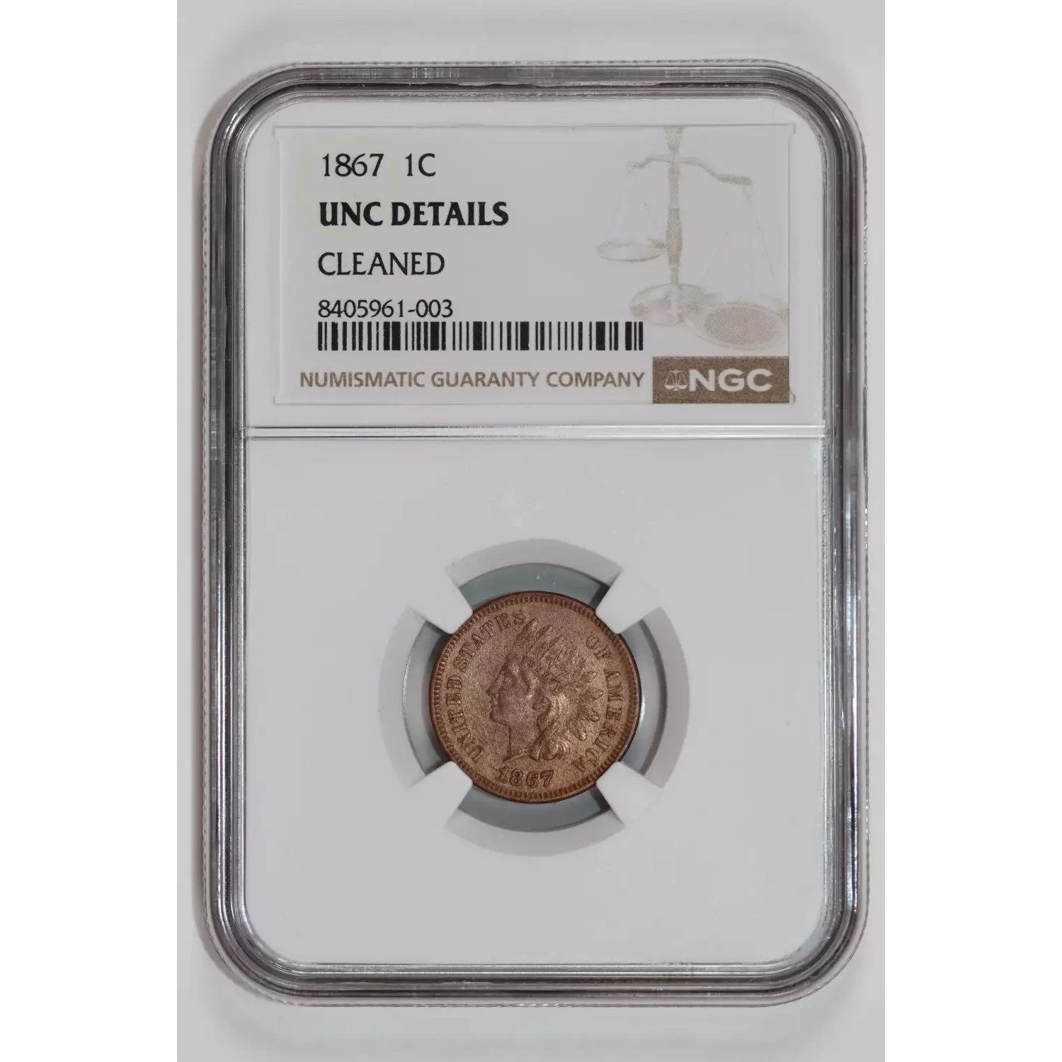 1867 INDIAN HEAD CENT NGC UNC DETAILS
