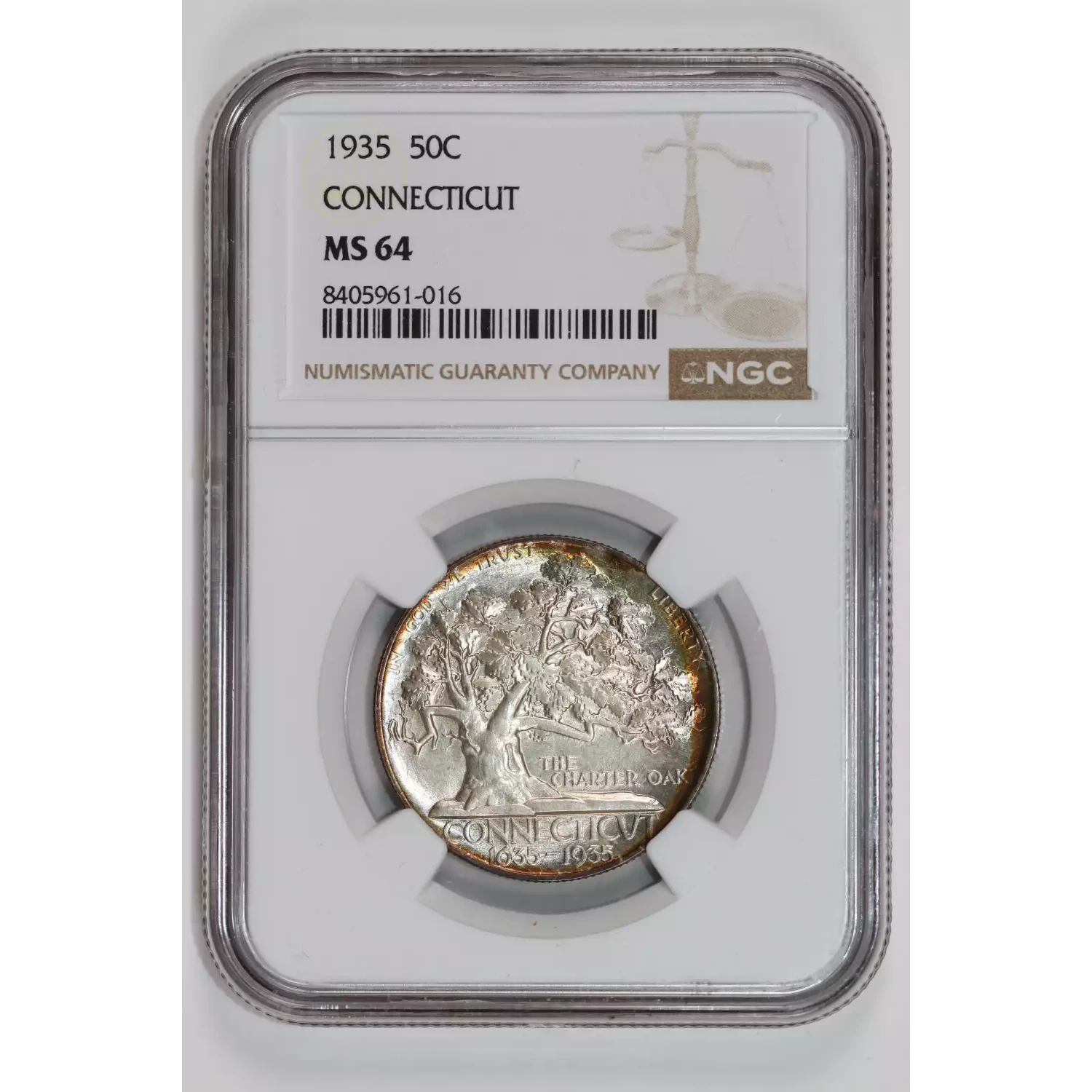 1935 CONNECTICUT COMMEMORATIVE HALF DOLLAR NGC MS64 RAINBOW TONING!
