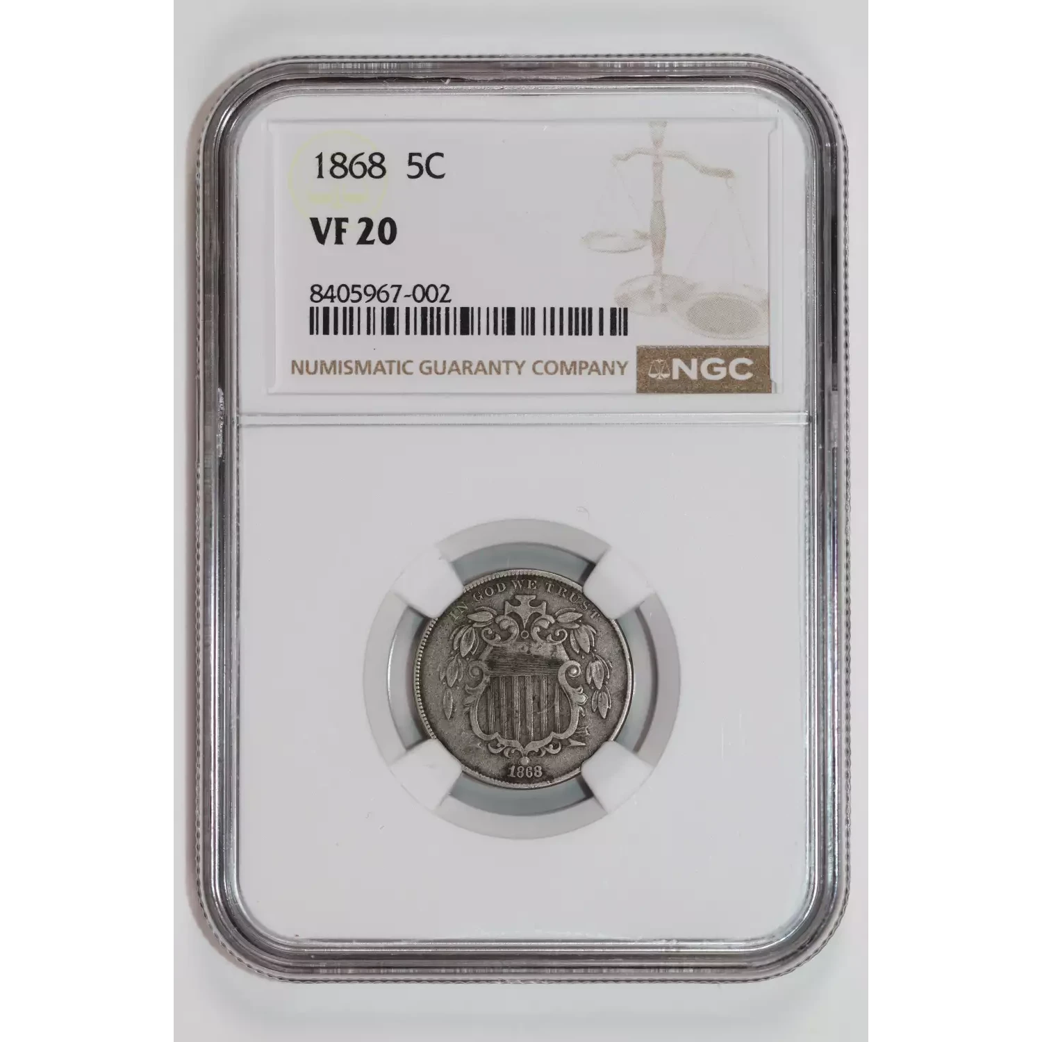 1868 SHIELD NICKEL NGC VF20