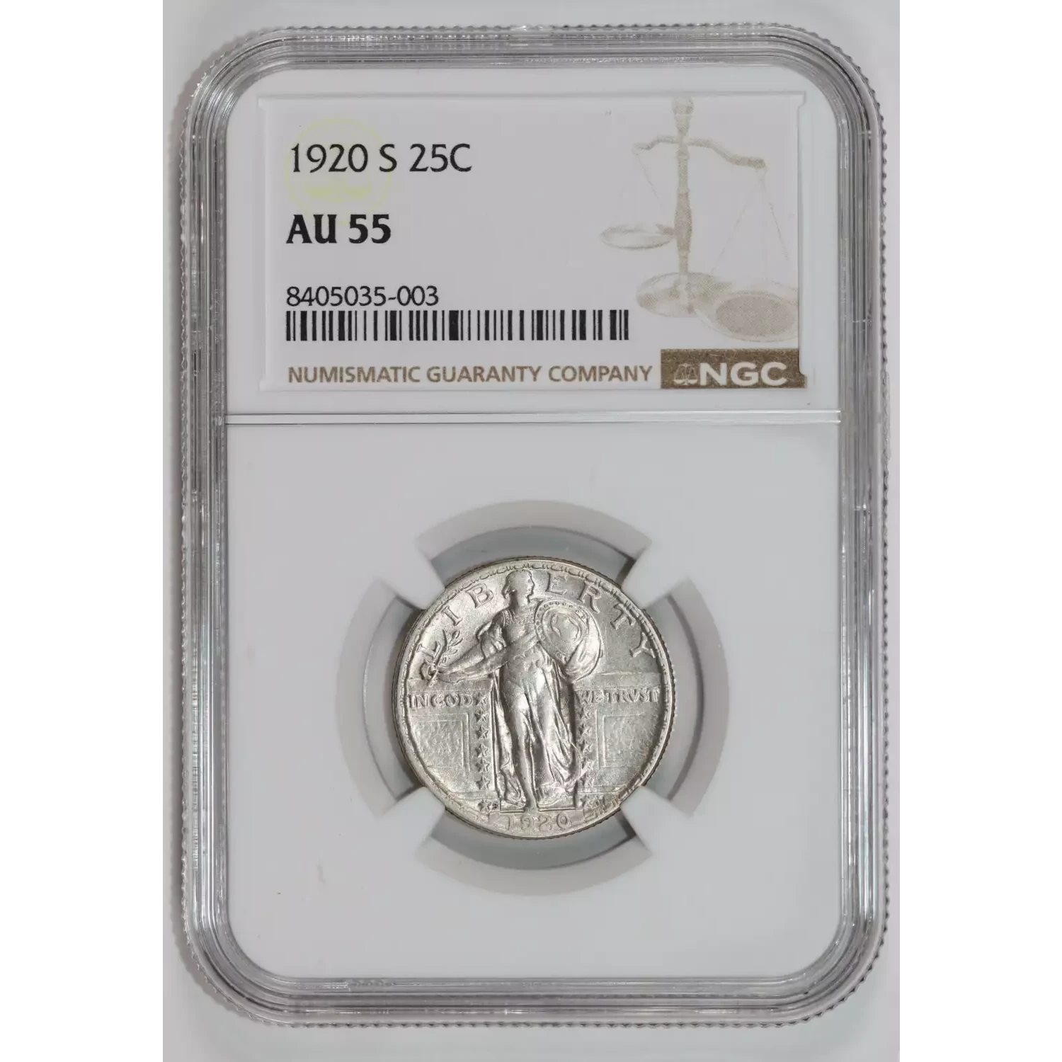 1920-S STANDING LIBERTY QUARTER NGC AU55