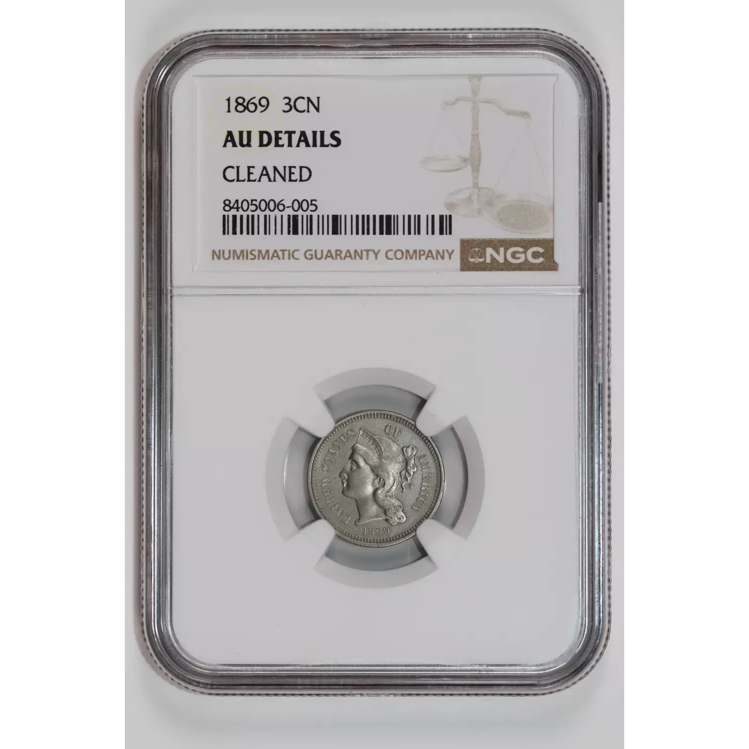 1869 THREE CENT NICKEL NGC AU DETAILS