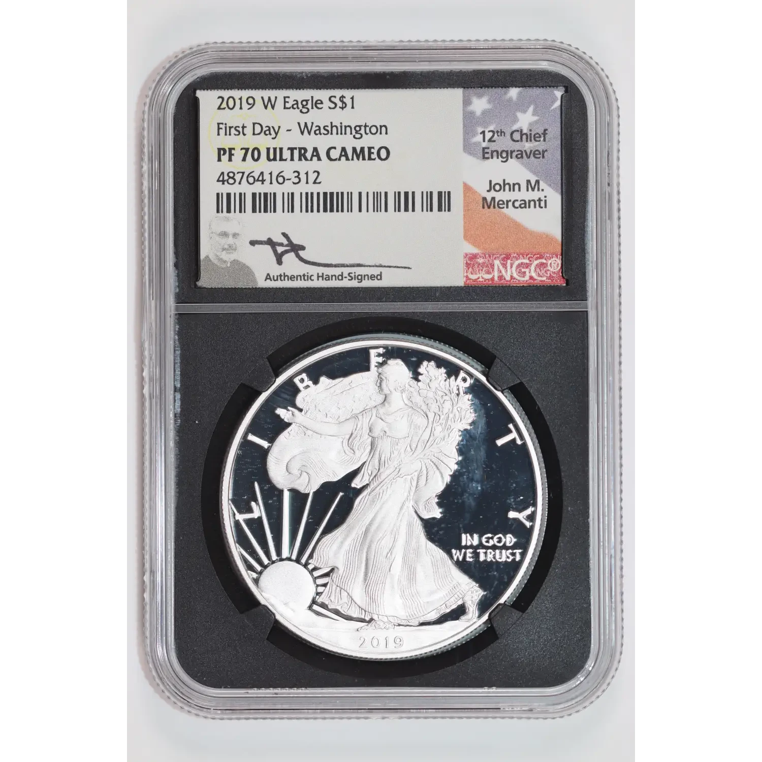 2019-W PROOF SILVER EAGLE FIRST DAY WASHINGTON NGC PR70 UCAM MERCANTI