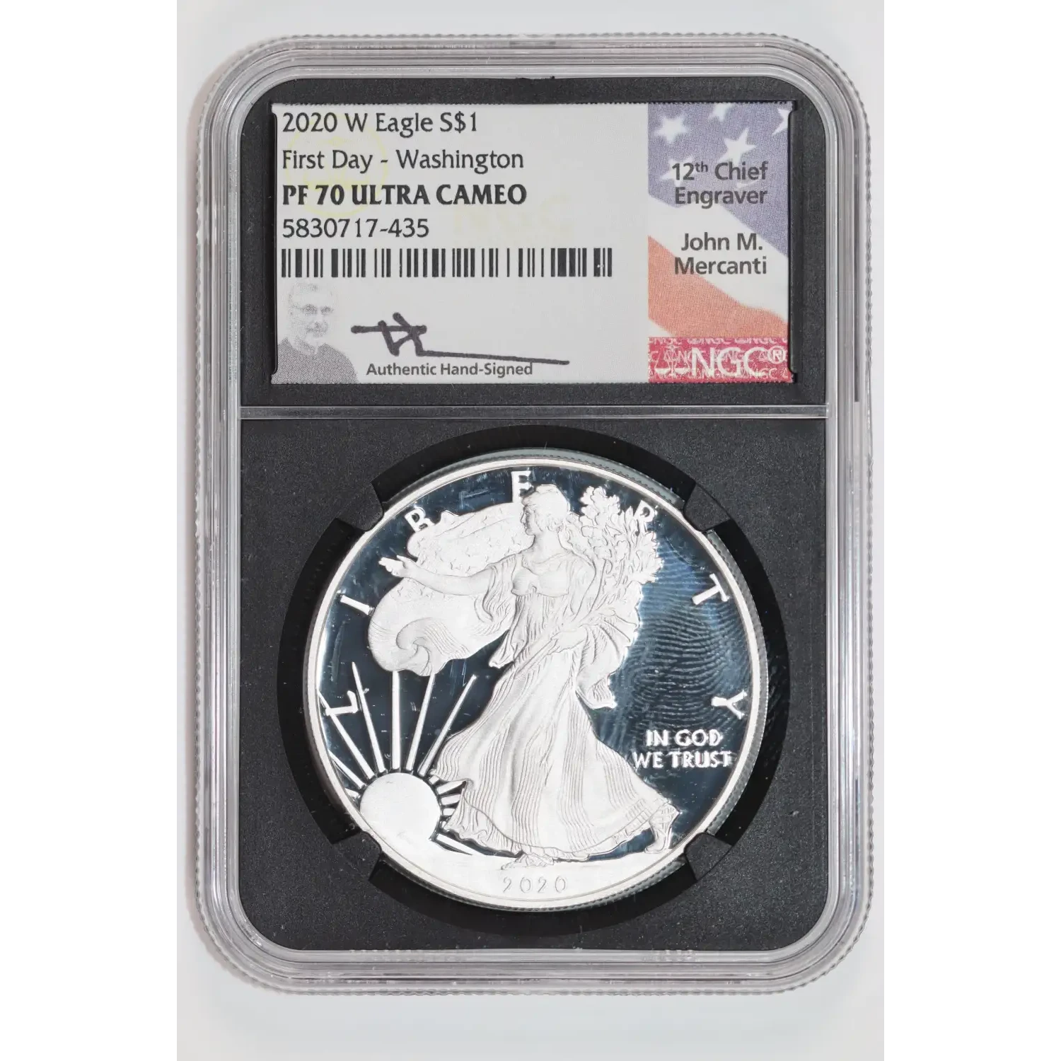 2020-W PROOF SILVER EAGLE FIRST DAY WASHINGTON NGC PR70 UCAM JONES