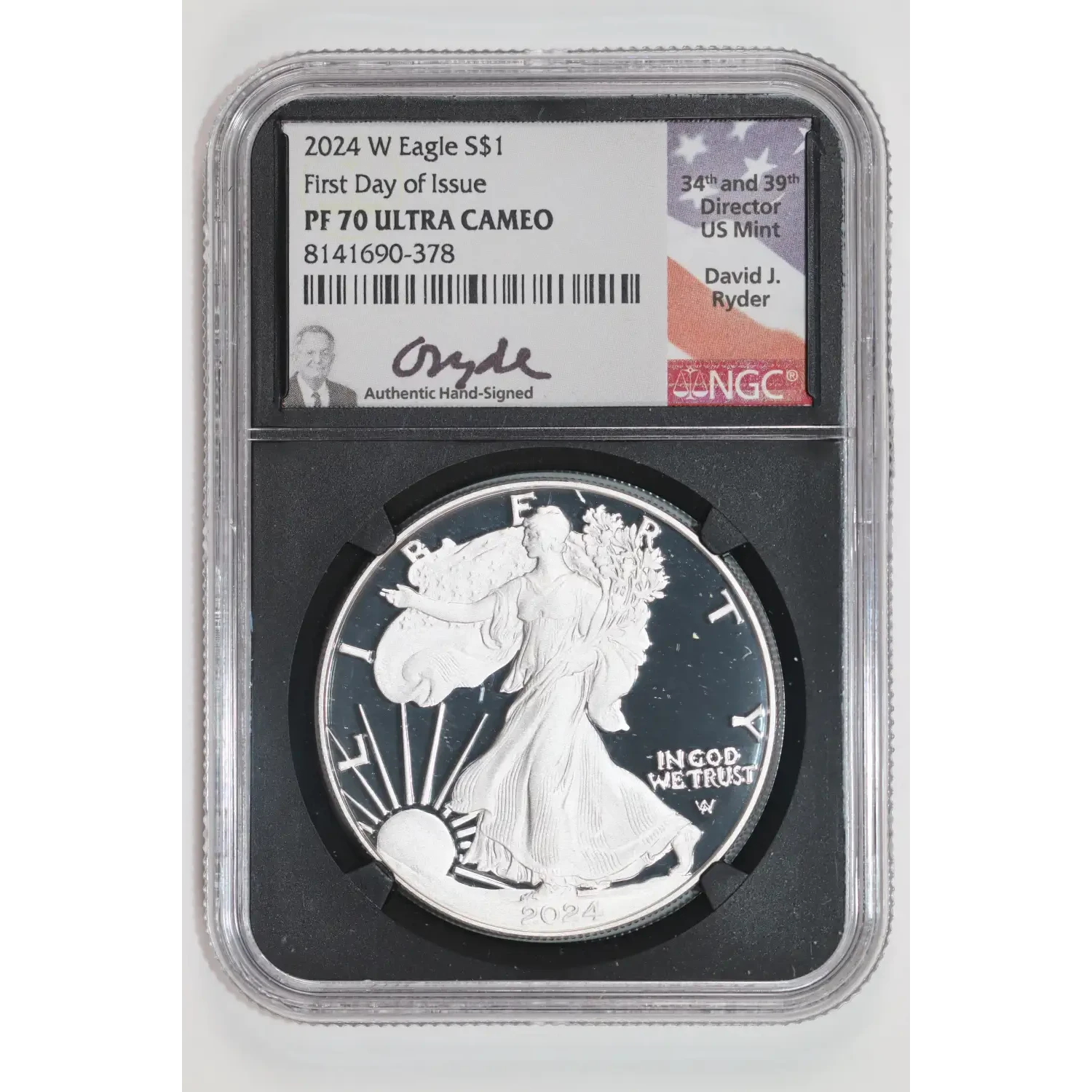 2024-W PROOF SILVER EAGLE FIRST DAY OF ISSUE NGC PR70 UCAM RYDER