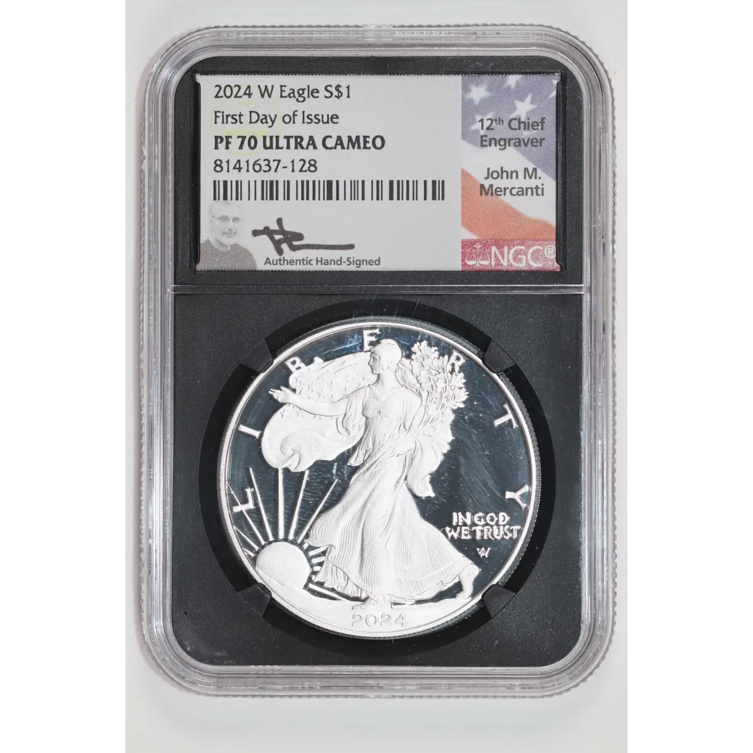 2024-W PROOF SILVER EAGLE FIRST DAY OF ISSUE NGC PR70 UCAM MERCANTI