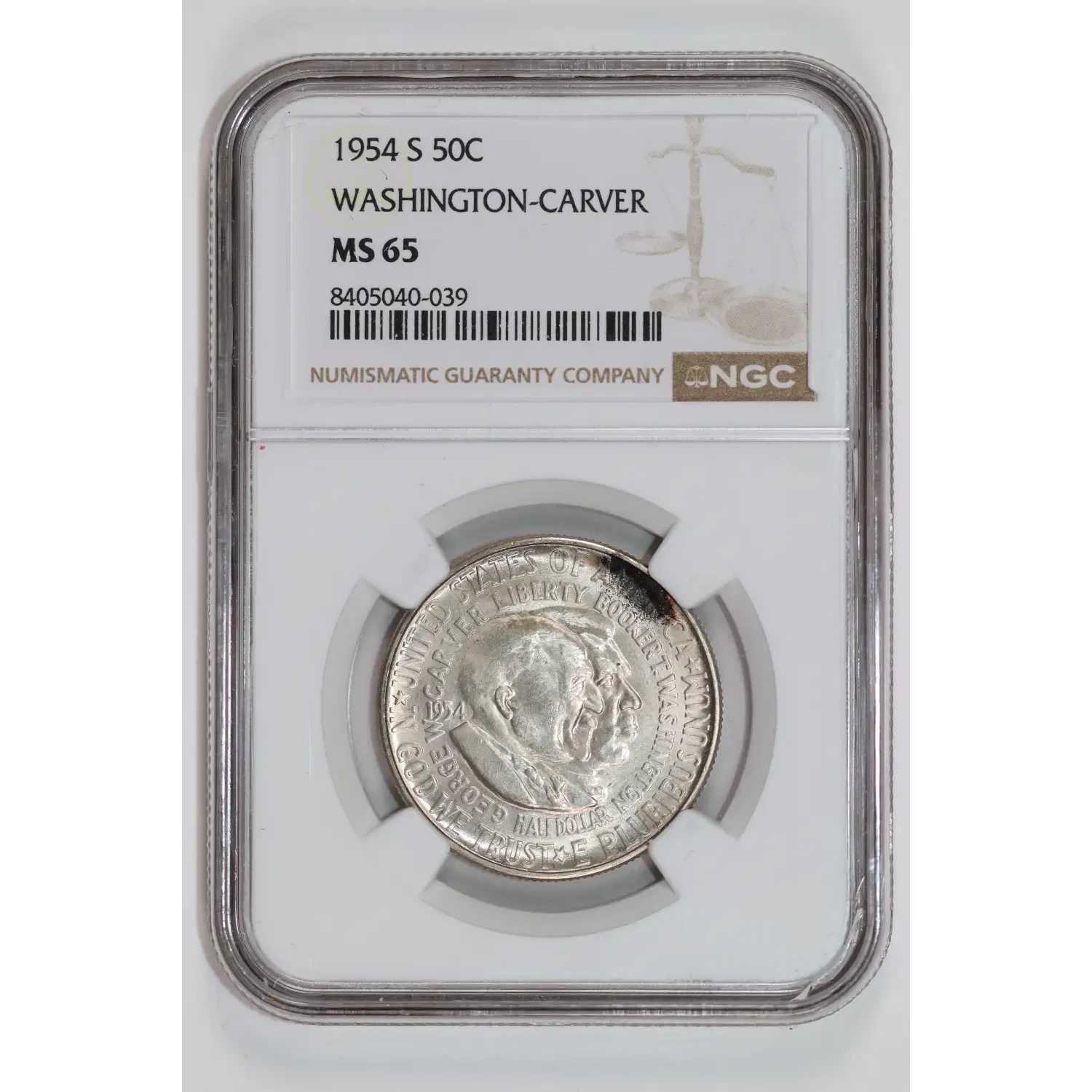 1954-S WASHINGTON CARVER COMMEMORATIVE HALF DOLLAR NGC MS65