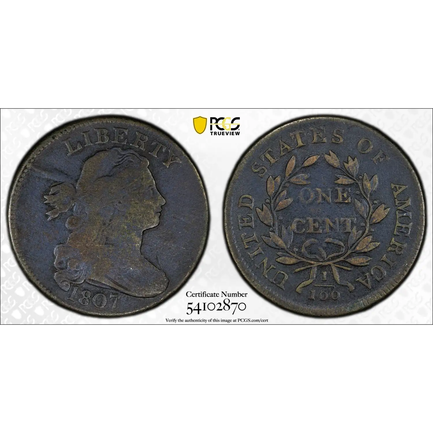 1807 DRAPED BUST LARGE CENT "COMET" PCGS FINE DETAILS