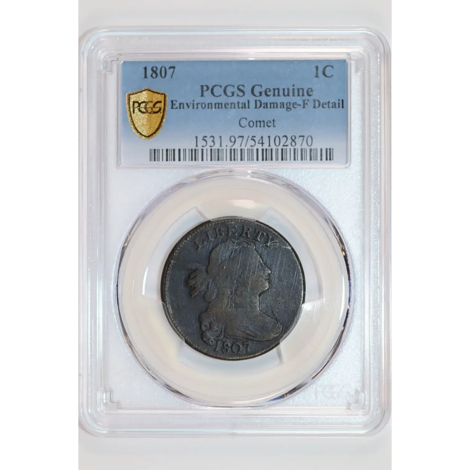 1807 Large Cents Draped Bust PCGS Genuine - Fine Details (97 - Environmental Damage) BN Comet