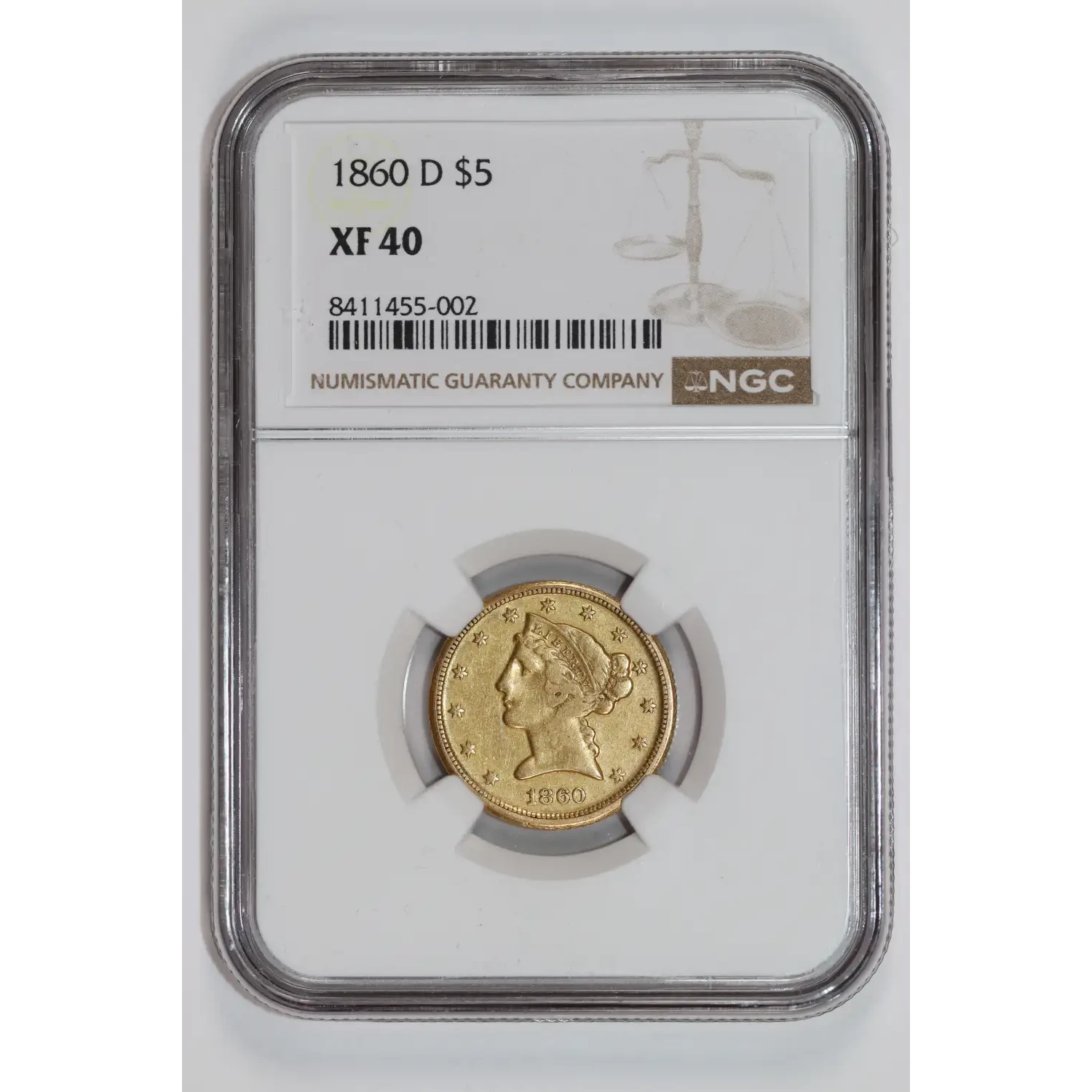 1860-D $5 GOLD LIBERTY HALF EAGLE NGC XF40