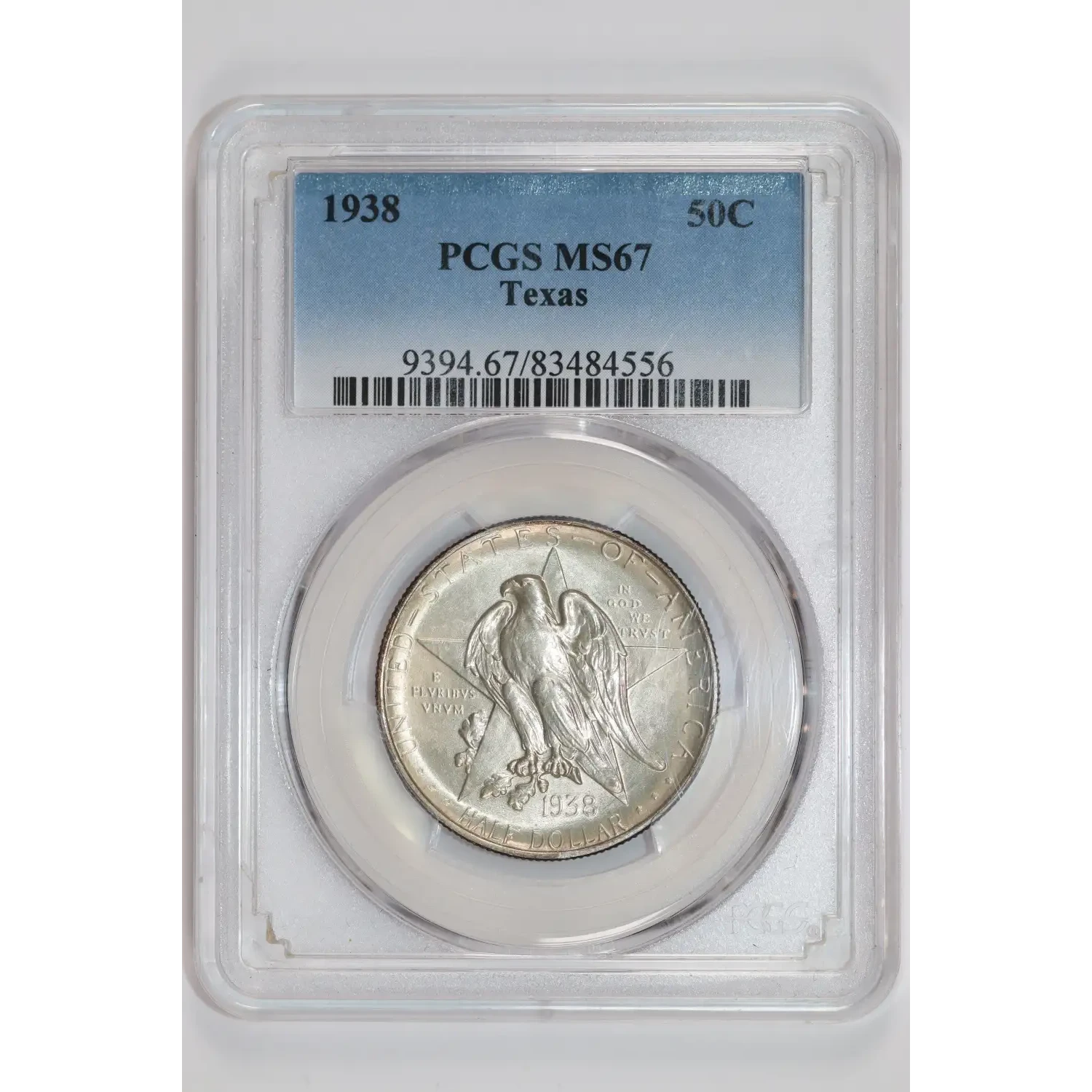 1938 TEXAS COMMEMORATIVE HALF DOLLAR PCGS MS67 CAC